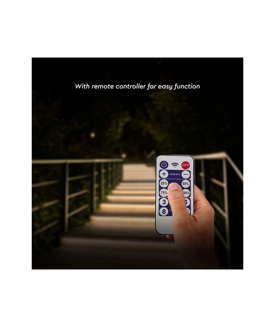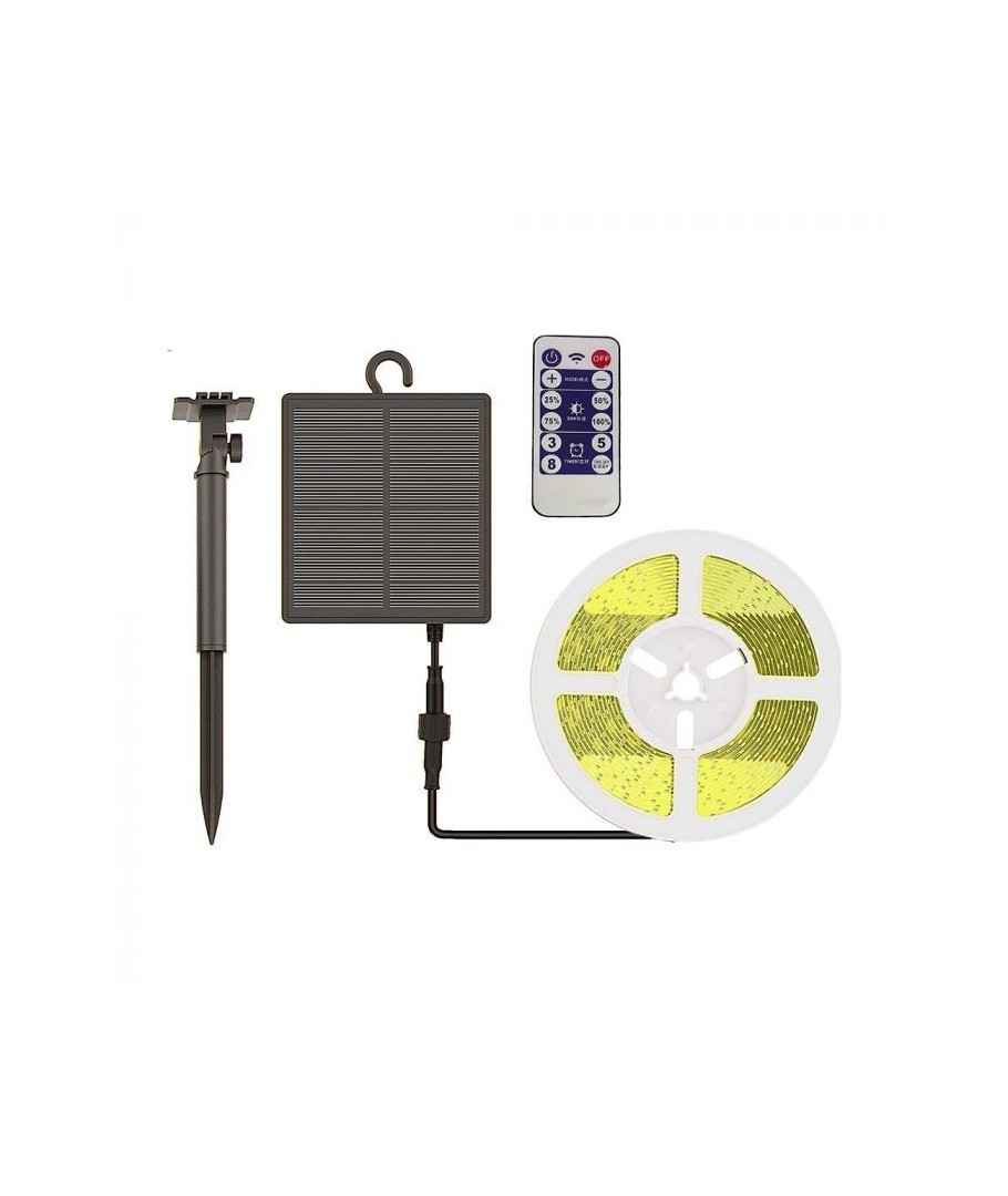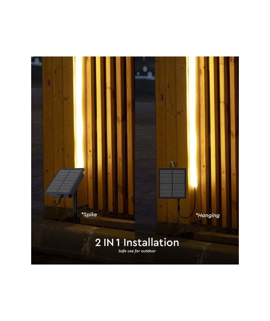Denne 5 meter lange strip er perfekt til haver, indgangspartier og andre udendørs arealer. Med sin IP67-klassificering er den beskyttet mod støv og vand, så den kan tåle selv de mest udfordrende vejrforhold. Med den medfølgende fjernbetjening kan du nemt styre lysets intensitet og skabe den helt rigtige atmosfære. Solcellepanelet gør det let at installere og placere det medfølgende solcellepanel, da det kan hænges op eller sættes med et spyd i jorden.