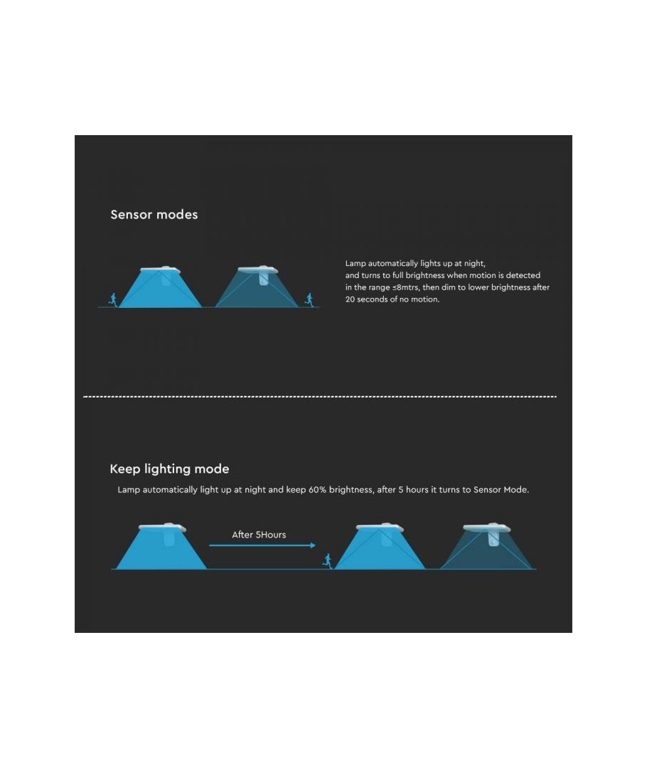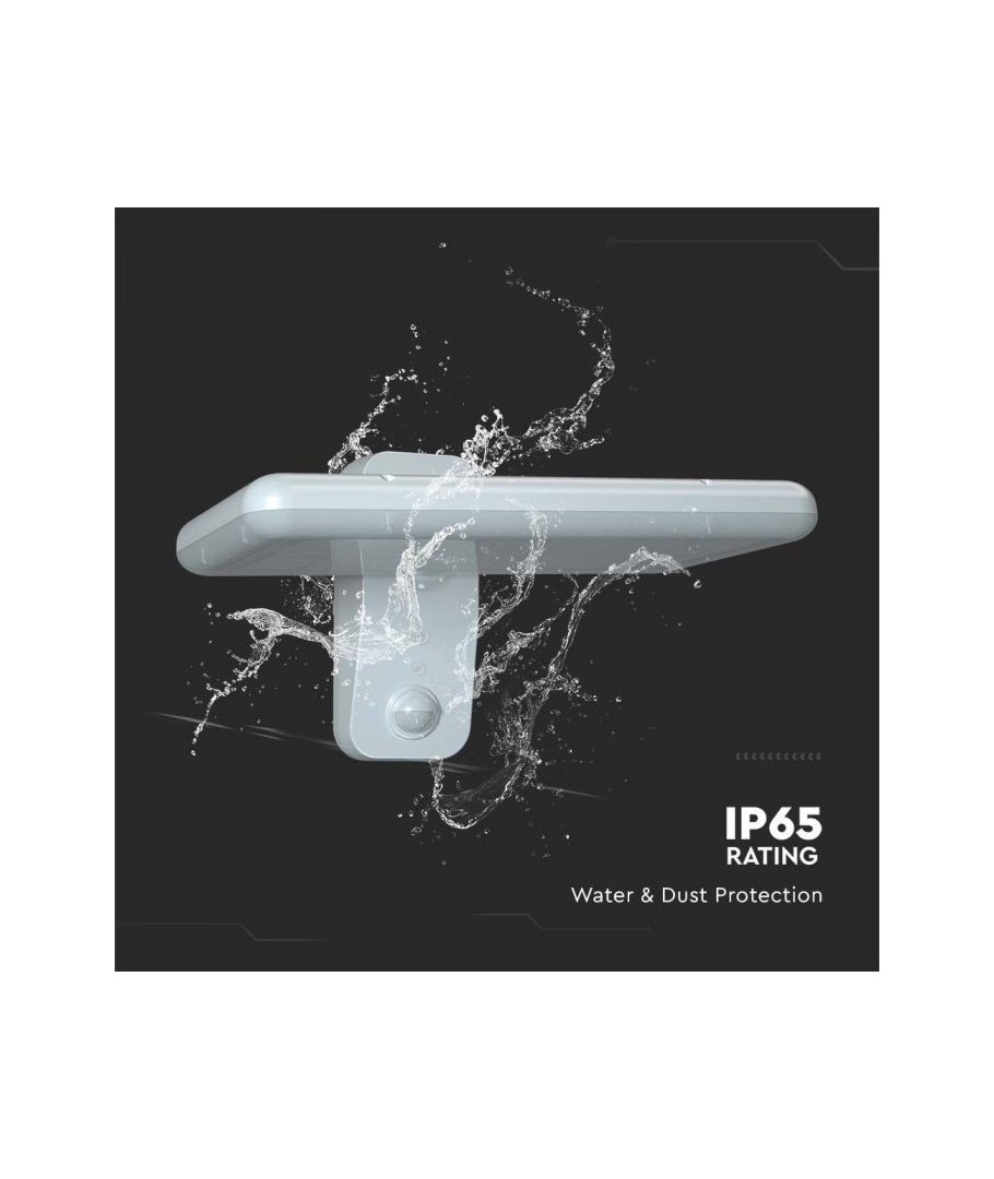 Opgrader dit udendørsområde med V-Tac 15W LED Solcelle væglampen. Denne sorte væglampe er udstyret med en sensor og har en høj IP65 beskyttelsesgrad, hvilket gør den velegnet til udendørs brug.