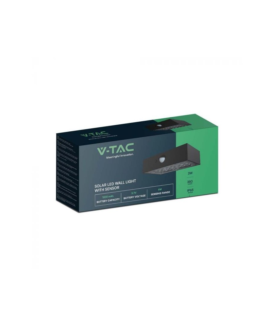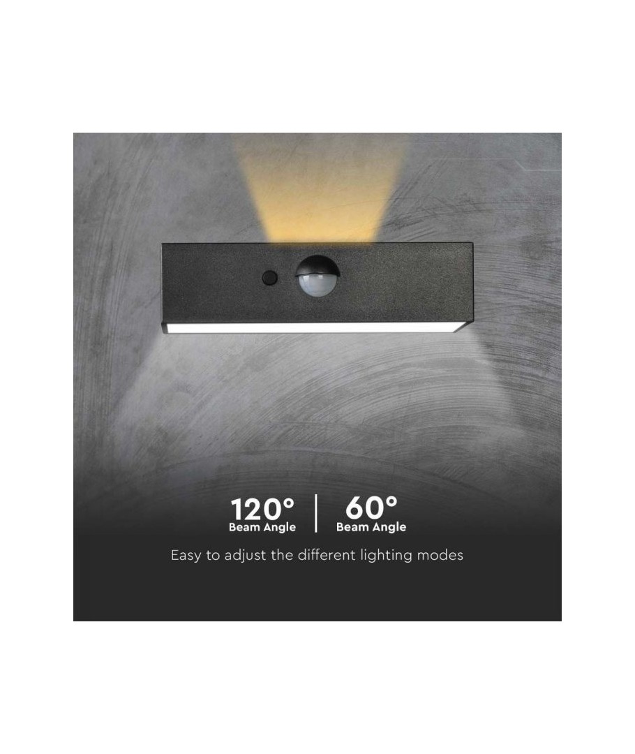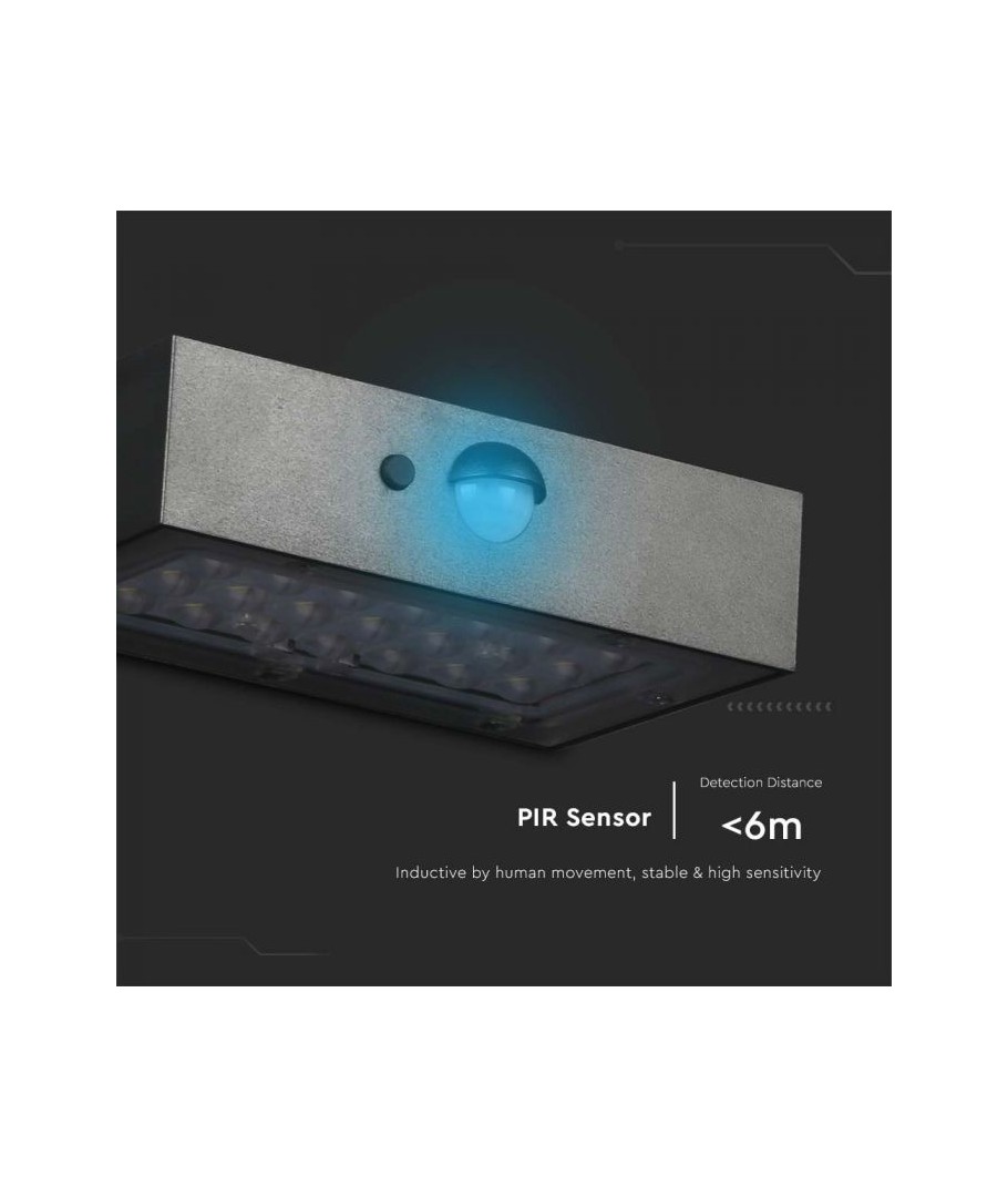 V-Tac 3W LED Solcelle væglampe er den perfekte løsning til udendørs belysning. Den har en flot sort finish og er udstyret med en sensor med en radius på 6 meter, som sikrer at lampen tænder automatisk, når der er bevægelse i nærheden. Lampen har også to forskellige lysvarianter. Med dens IP65-klassificering er den vandtæt og velegnet til udendørs brug i al slags vejr. Den bedste del er, at den er solcelledrevet, så den er energieffektiv og miljøvenlig. Efter blot 5 timers opladning kan lampen oplyse i minimum 50 timer. Gør din udendørsbelysning smartere og mere energieffektiv med V-Tac 3W LED Solcelle væglampe.