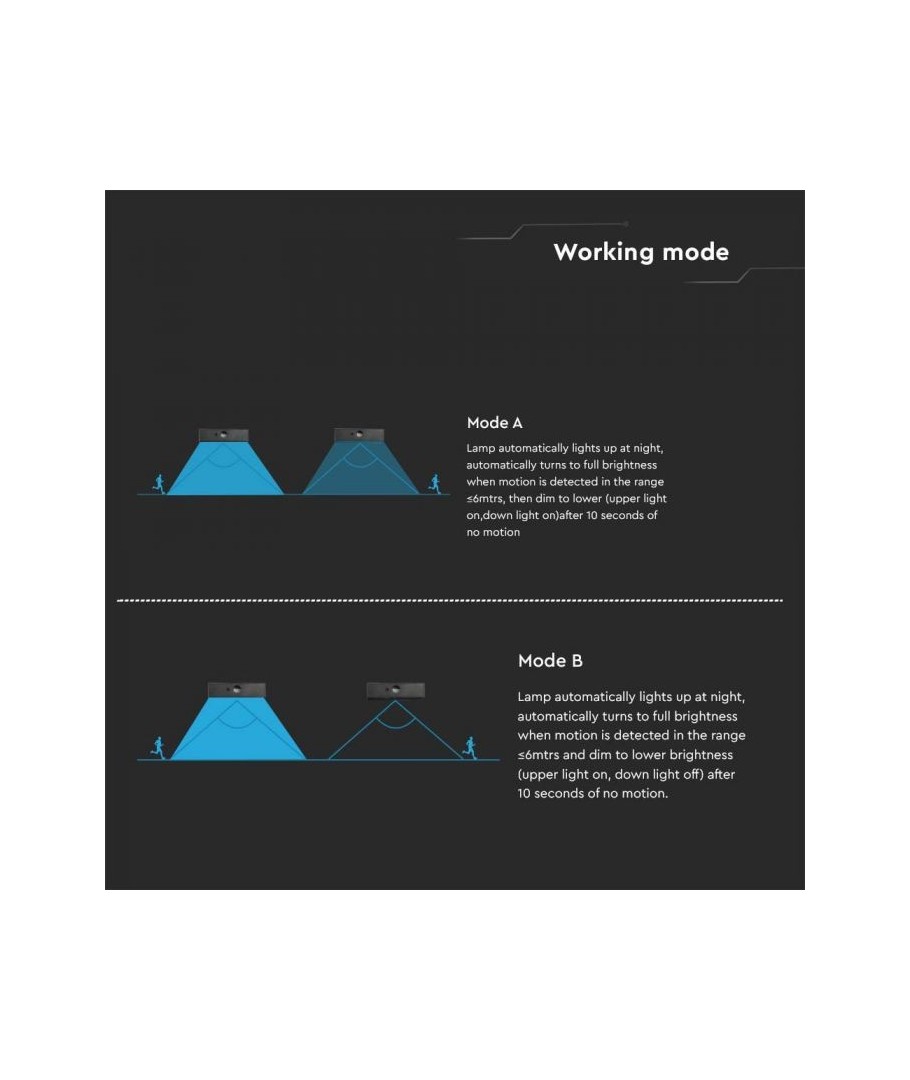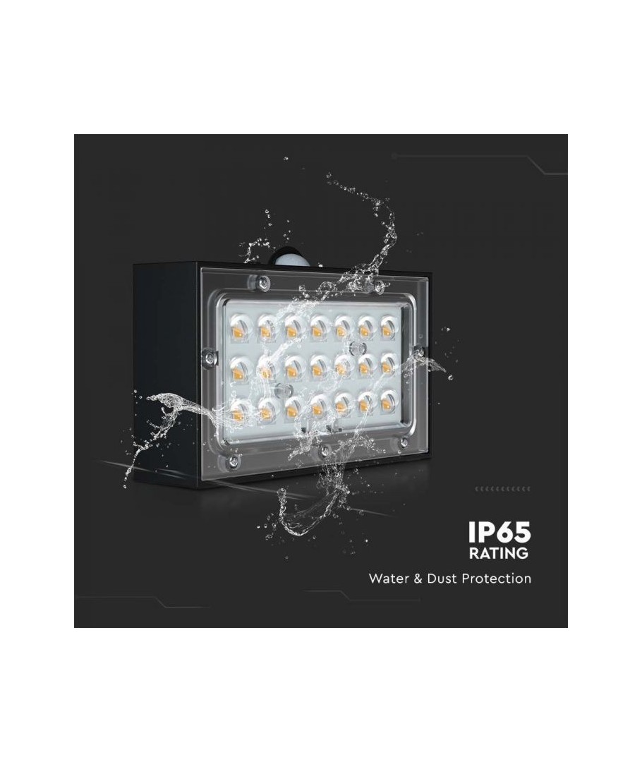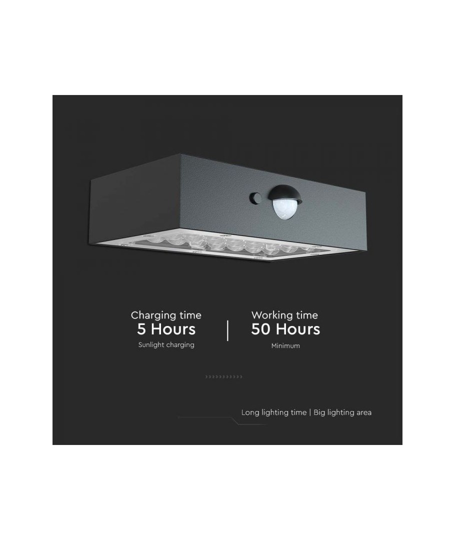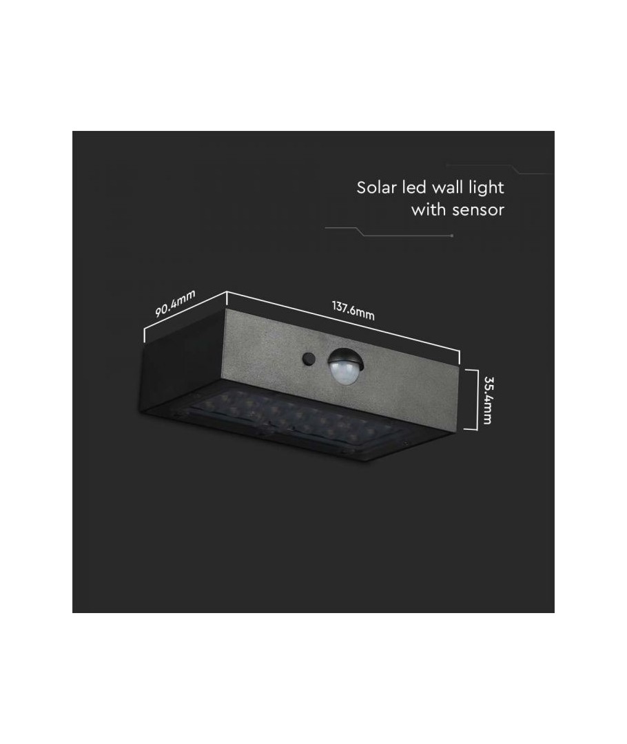 V-Tac 3W LED Solcelle væglampe er den perfekte løsning til udendørs belysning. Den har en flot sort finish og er udstyret med en sensor med en radius på 6 meter, som sikrer at lampen tænder automatisk, når der er bevægelse i nærheden. Lampen har også to forskellige lysvarianter. Med dens IP65-klassificering er den vandtæt og velegnet til udendørs brug i al slags vejr. Den bedste del er, at den er solcelledrevet, så den er energieffektiv og miljøvenlig. Efter blot 5 timers opladning kan lampen oplyse i minimum 50 timer. Gør din udendørsbelysning smartere og mere energieffektiv med V-Tac 3W LED Solcelle væglampe.