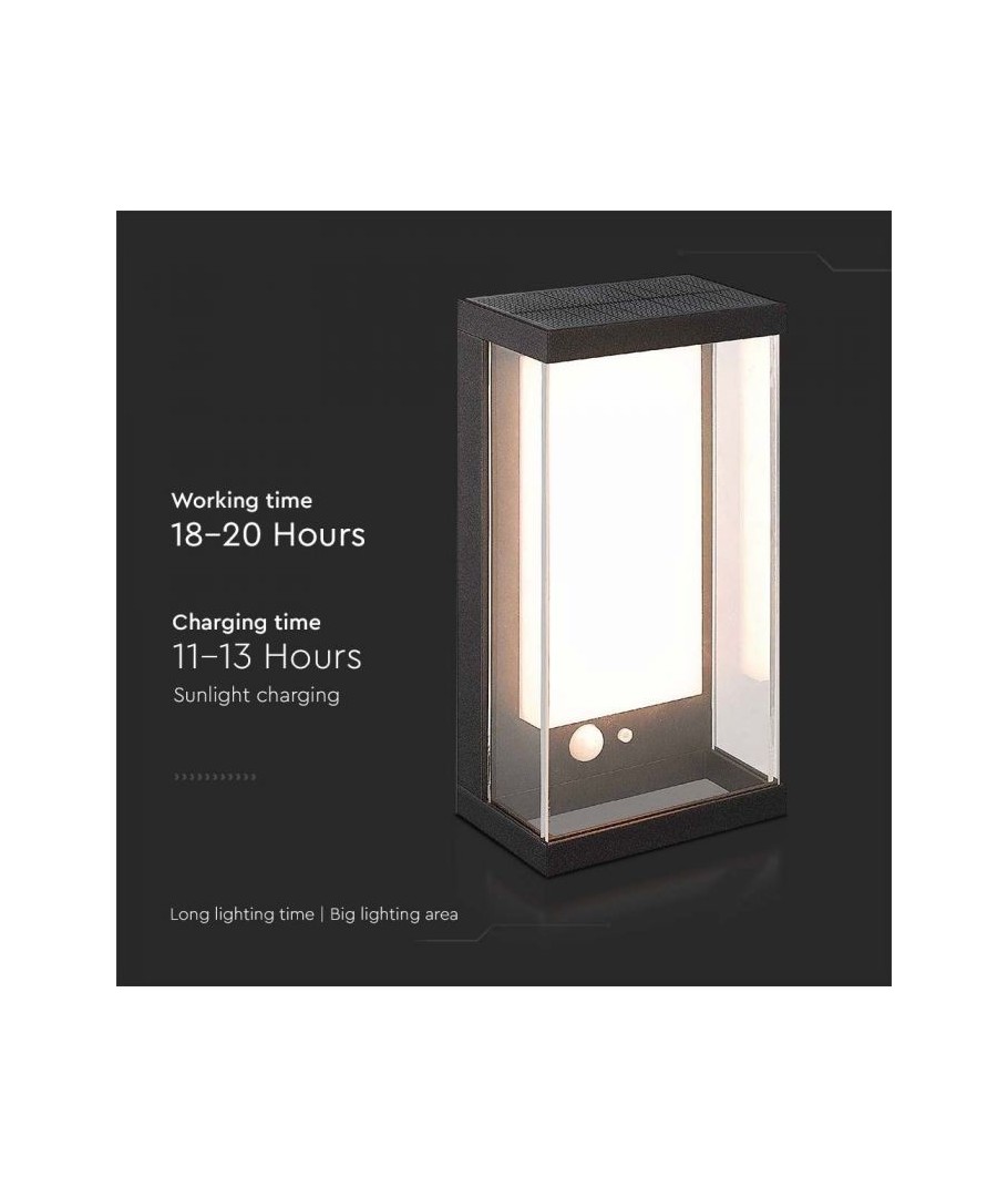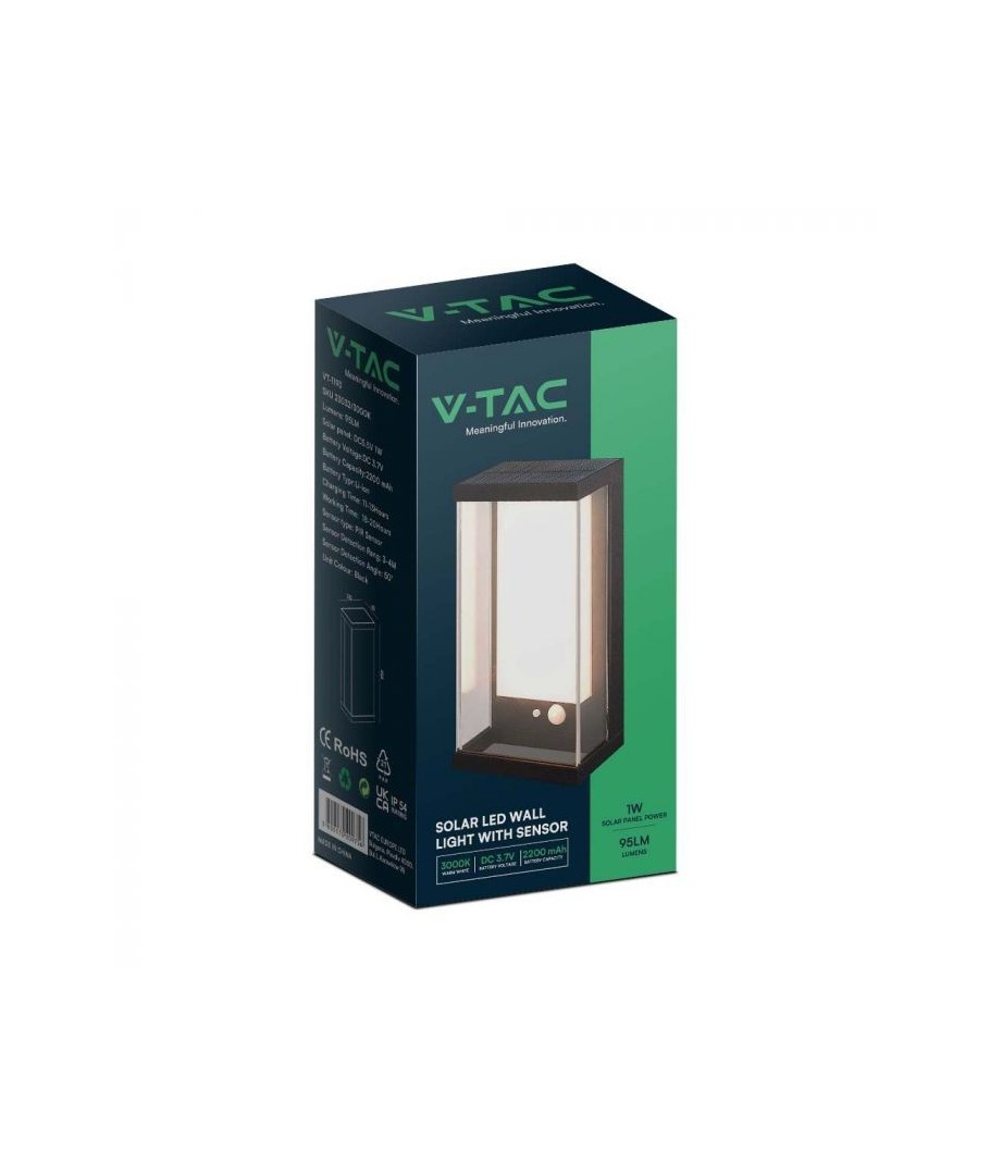 Denne væglampe er udstyret med en IP54 certificering, hvilket sikrer en fuldstændig beskyttelse mod støv og vandstænk. Med sin avancerede solcelleteknologi kan lampen oplade sig selv på bare 11-13 timer og give op til 18-20 timers lysstyrke. Den indbyggede sensor har desuden en rækkevidde på op til 4 meter, så lampen tænder automatisk, når der registreres bevægelse i nærheden. Gør din have eller indgang sikker og stilfuld med V-Tac 1W LED Solcelle væglampen.