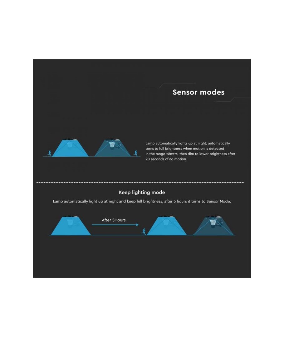 Med V-Tac 15W LED Solcelle væglampen får du både effektiv og energibesparende udendørs belysning. Den er ideel til brug på terrassen, i haven eller ved indgangspartiet.