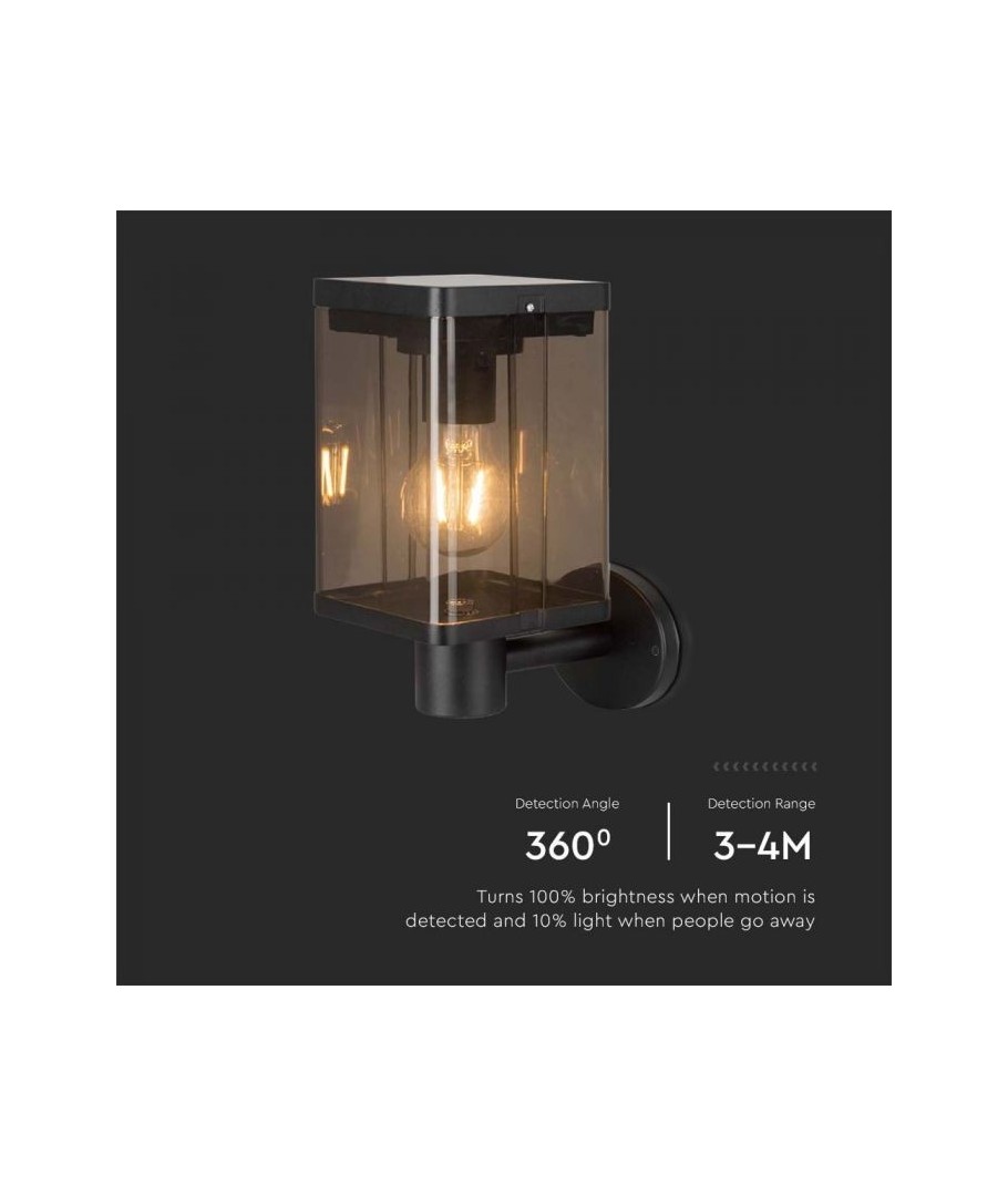 Væglampen er en stilfuld og praktisk løsning til at belyse din udendørsområde. Med dens sorte design og sensorfunktion, kan den automatisk tænde og slukke afhængigt af bevægelse i op til 4 meters radius.