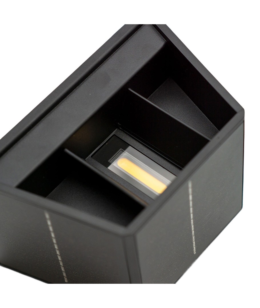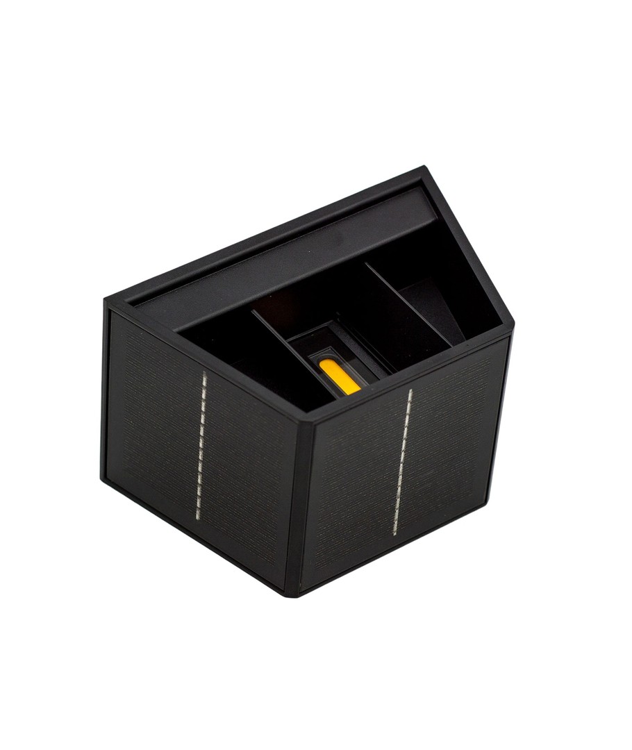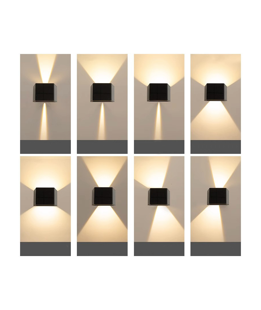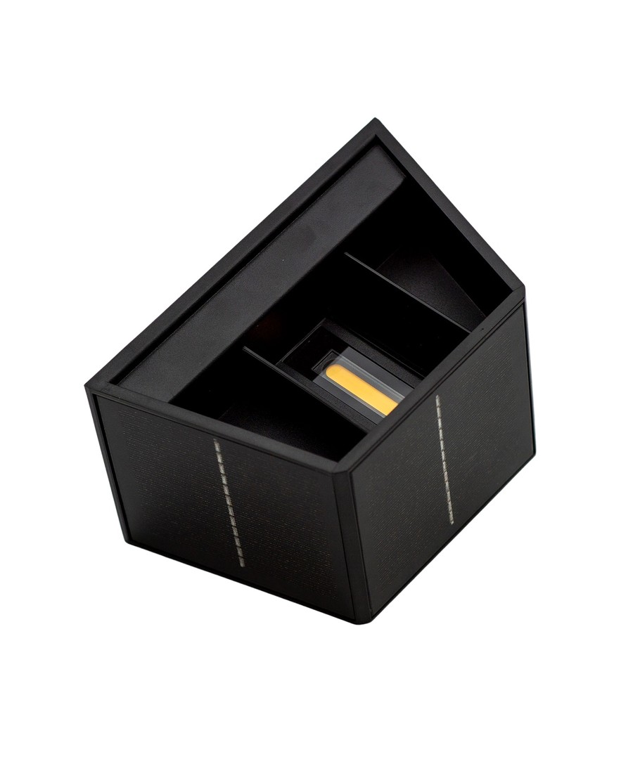 Oplev fordelene ved en solcelle væglampe designet til at levere effektiv belysning i et moderne sort look. Denne lampe er ideel til både funktionel og dekorativ anvendelse på udendørs vægge.