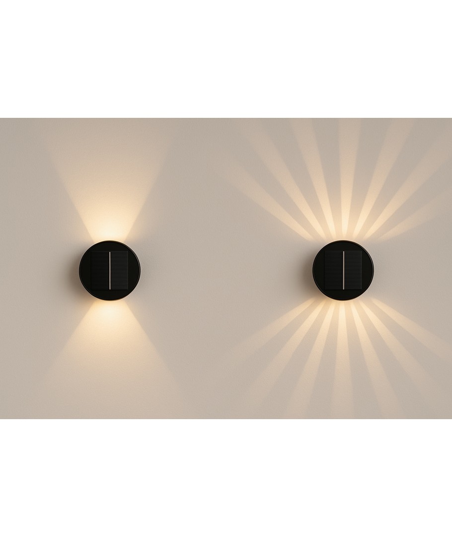 Med denne solcelle væglampe kan du nyde effektiv og stemningsfuld belysning, der ikke kun opfylder din udendørs belysningsbehov, men også bidrager til et grønnere miljø gennem brug af solenergi. Ideel til både moderne og traditionelle udendørsindretninger.