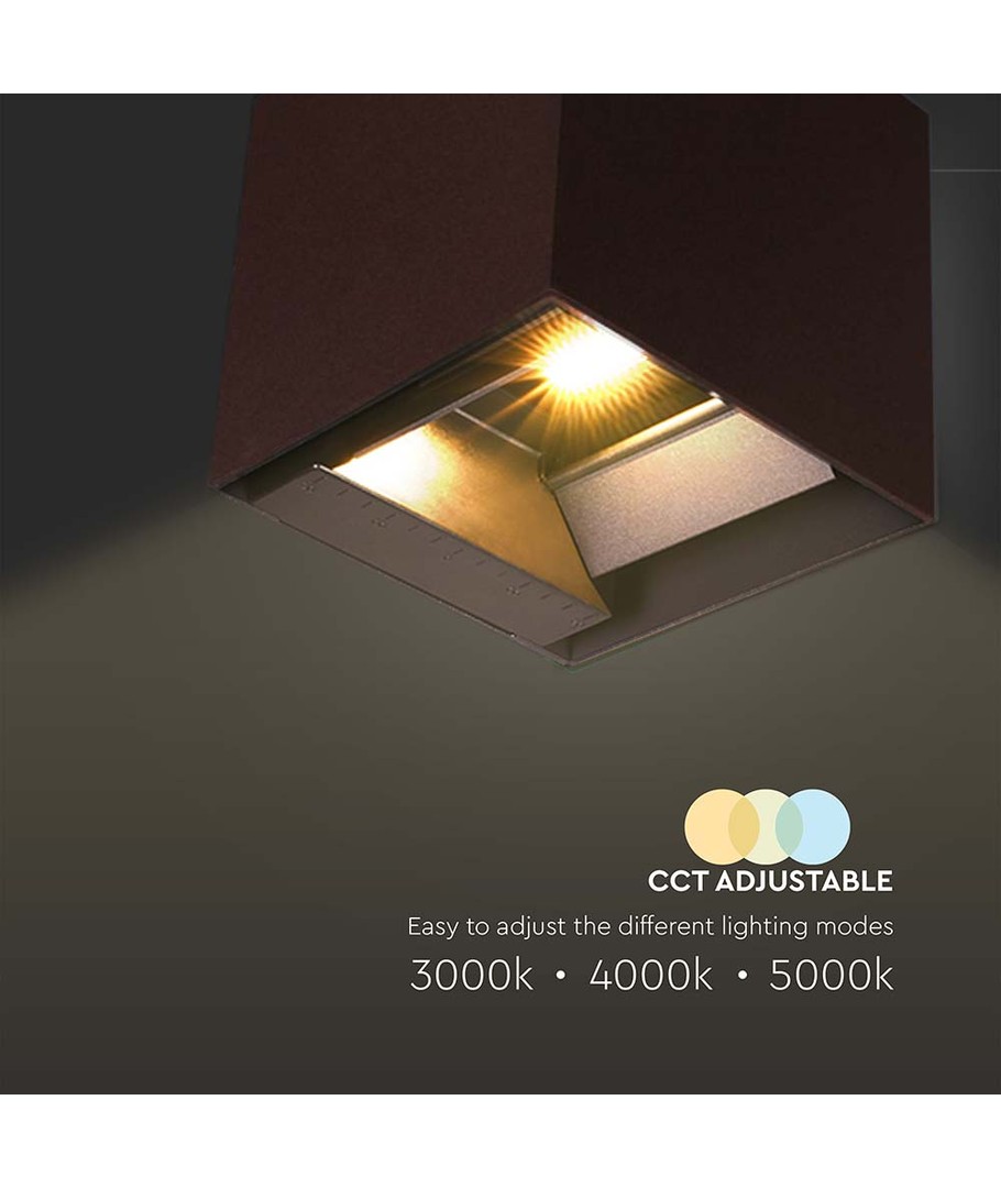 Oplev den perfekte kombination af design og funktionalitet med denne LED væglampe. VT-409CCT er ideel til udendørs belysning takket være dens IP65-klassificering, som gør den modstandsdygtig over for både vandstænk og regn.