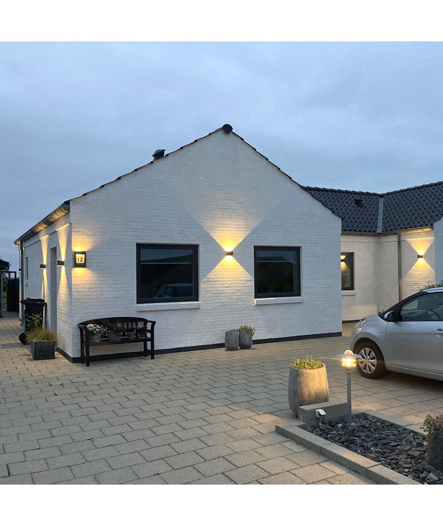 Denne sorte up/ned væglampe fra danske LEDlife, er designet med fokus på æstetik og kvalitet. Væglampen har justerbar spredning (10-120 grader) i både top og bund. Denne funktion er yderst populær fordi at det ofte højner bygningens udseende og giver et moderne og elegante udtryk. Lampen er vandtæt og kan derfor bruges både inde og ude.