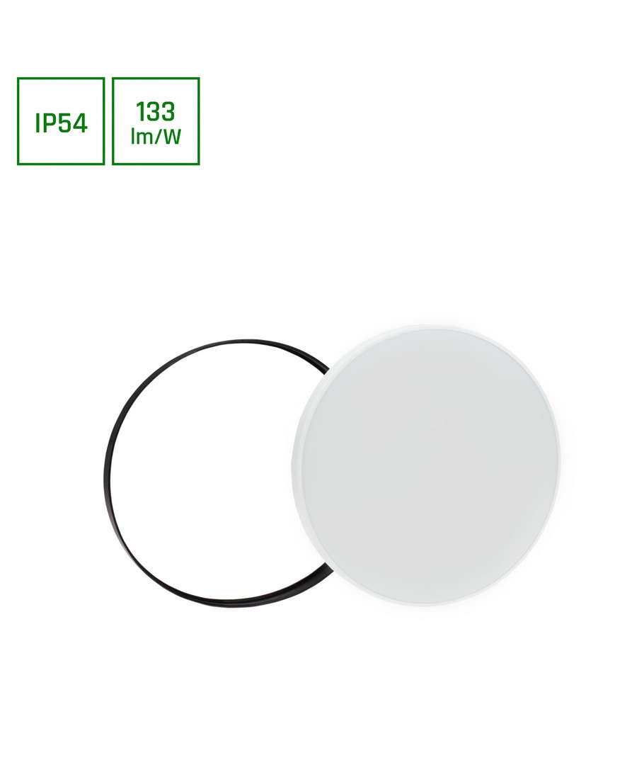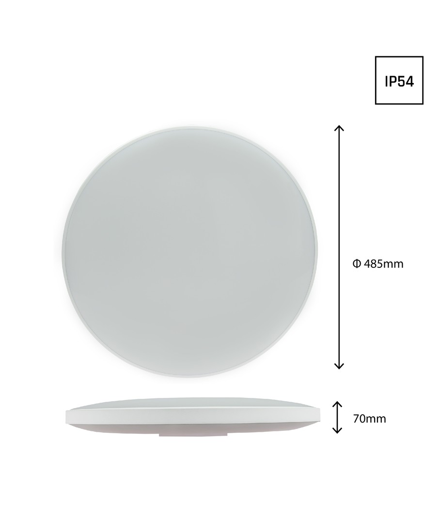 Den er beskyttet med en IP54 rating, hvilket betyder, at den tåler fugtig luft og vandstænk, hvilket gør den velegnet til brug i rum med højere luftfugtighed, såsom badeværelser og vaskerum.