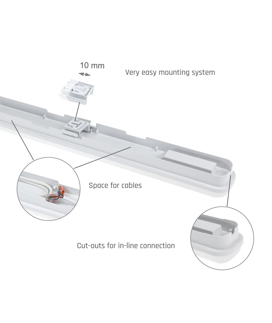 Den høje lyskvalitet med en RA værdi på 80-85 garanterer, at alle farvenuancer fremstår naturligt og nøjagtigt. Den neutrale hvide farvetemperatur frembringer et klart og behageligt lys uden uønskede blå eller gule toner, hvilket skaber et godt og produktivt arbejdsmiljø.