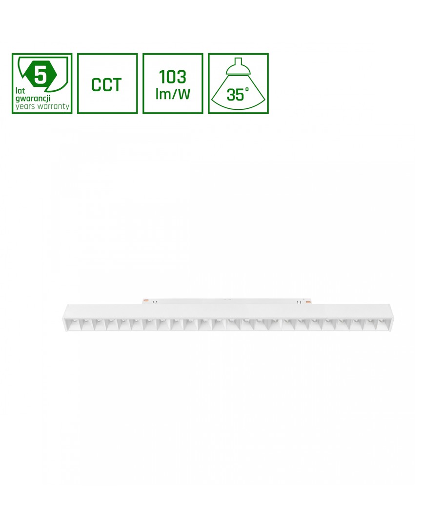 Dette skinnelys kræver en 48V DC forsyning, og med en lysstyrke på 1200 lumens fordelt i en præcis 40° lysvinkel, opnår du et fokuseret og kontrolleret lys. Ekspertisen i designet sikrer, at lyset fremhæver alle farver levende og naturligt.