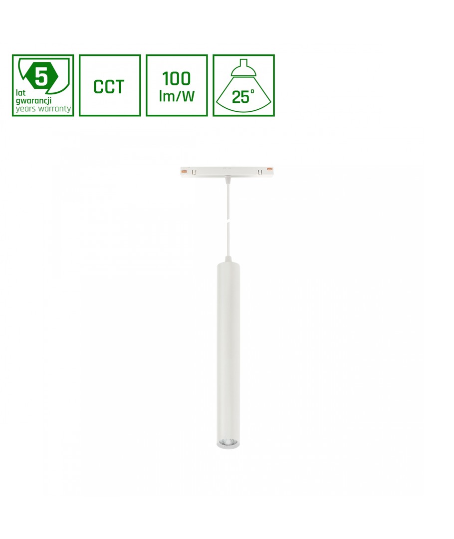 Oplev det moderne 12W nedhængte skinne lys, der er designet til at opfylde selv de mest krævende belysningsbehov. Dette lys, tilsluttet en 48V DC forsyning, har en enestående lysstyrke på 830 lumens. Med en fokuseret spredning på 25°, leverer det et kontrolleret og præcist lys.