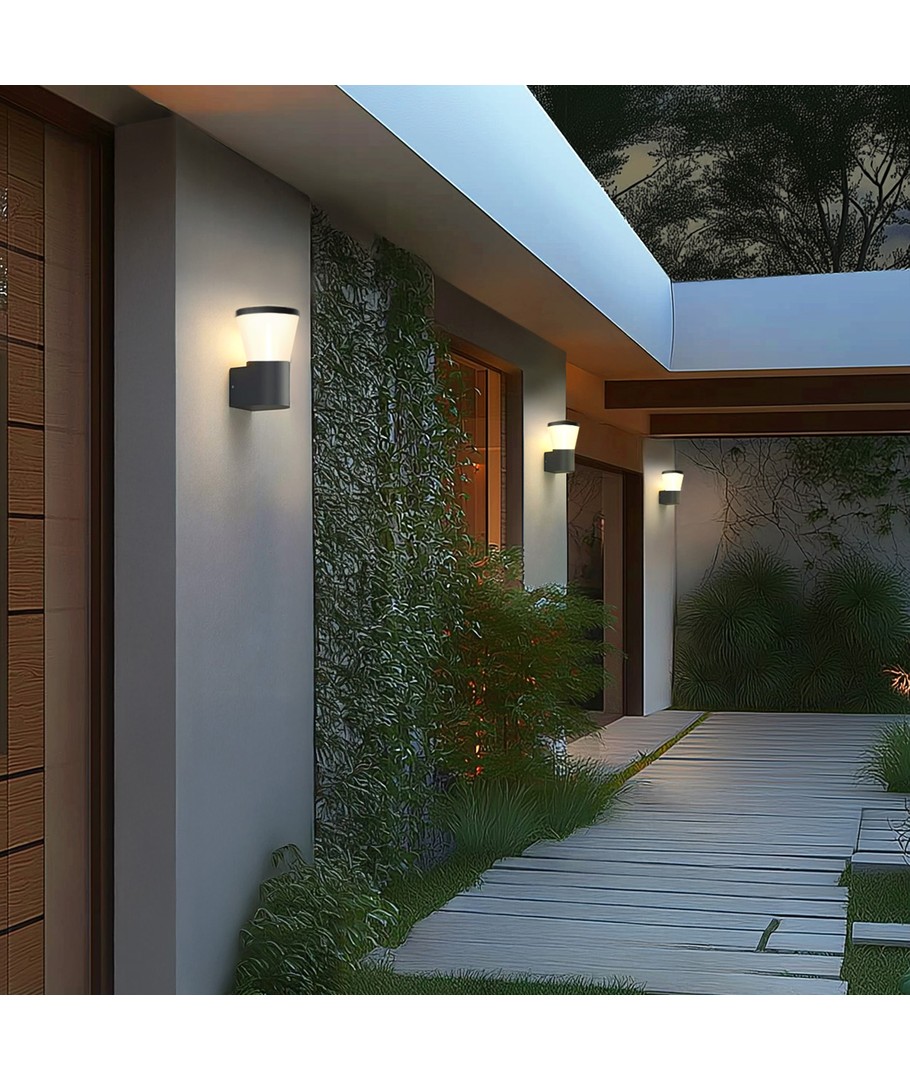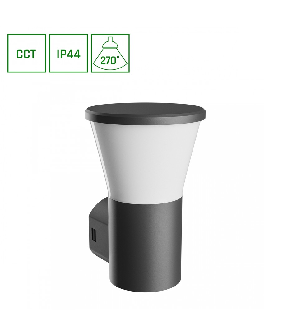 Med dimensioner på 230 x 155 x 160 mm har denne væglampe en kompakt størrelse, der gør installation enkel og problemfri. Den sorte finish tilføjer en tidløs elegance, mens den runde form harmonerer med forskellige arkitektoniske stilarter.
