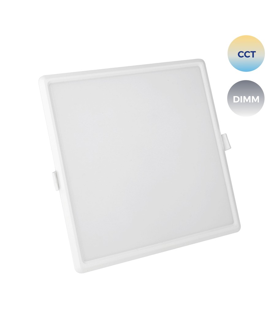 Den kvadratiske lysenhed har dimensioner på 215 x 38 x 215 mm og kræver et hul på 205 mm for installation, hvilket gør den perfekt til de fleste standardindbygningsløsninger. Tilslutning til 230V forsyning sikrer en pålidelig og stabil drift.