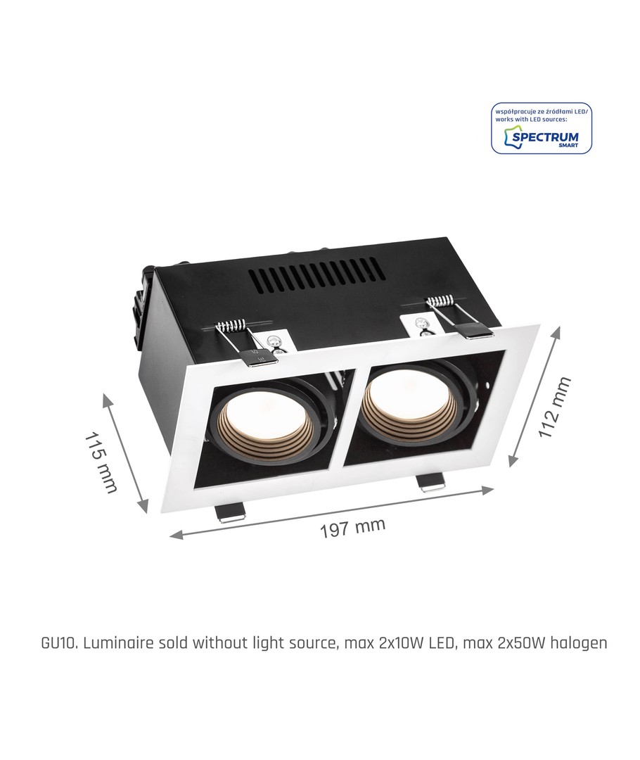 Designet til bekvemmelighed, kan denne belysningsenhed tilsluttes direkte til en 230V forsyning, hvilket gør installationen hurtig og problemfri. Med dimensionerne 197 x 112 x 115 mm passer spotlyset perfekt i en forudskåret hul størrelse: 180x93 mm, hvilket sikrer en præcis og sikker montering.