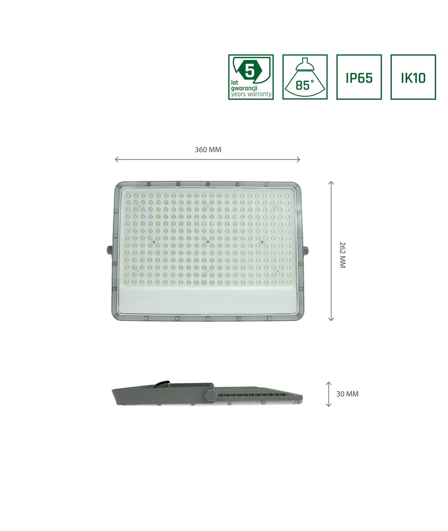 Med en imponerende lysstrøm på 14000 lumens, indfanger denne enhed perfekt de områder, der kræver kraftig oplysning. Den har en bred spredning på 85 grader, som sikrer en jævn og fyldig lysfordeling.