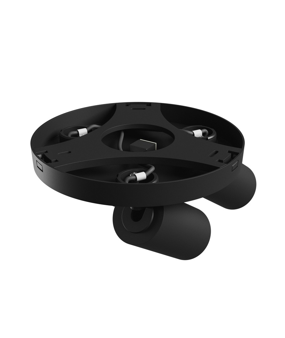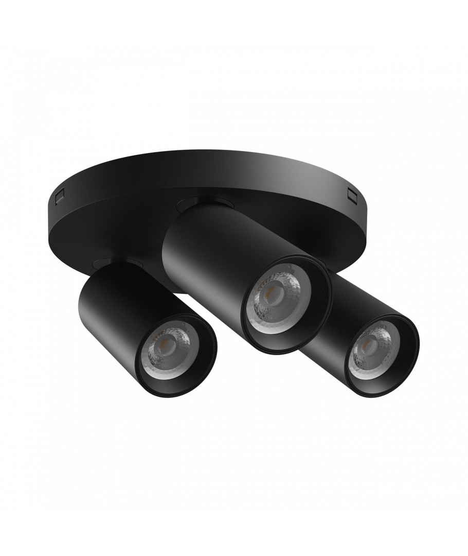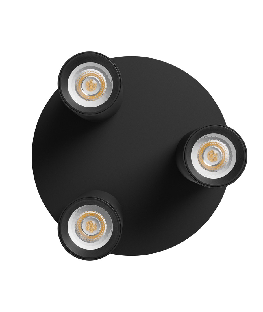 Den runde loftlampe med 3 spots er en elegant og funktionel løsning til at belyse indendørs rum. Designet i sort aluminium, passer den perfekt til moderne indretninger.