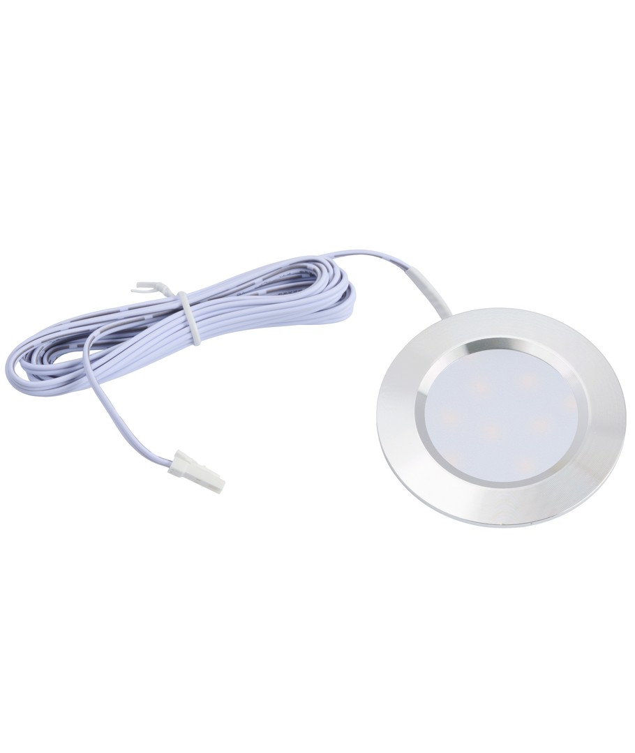 LED'en er af højeste kvalitet, garanterer en levetid på op til 50.000 timer og anvender en professionel driver sammen med fremragende køling for største pålidelighed. Designet er funktionelt med dimensionerne 14 x Ø68 mm med en hul størrelse på 56 mm, der passer til de fleste møbler.