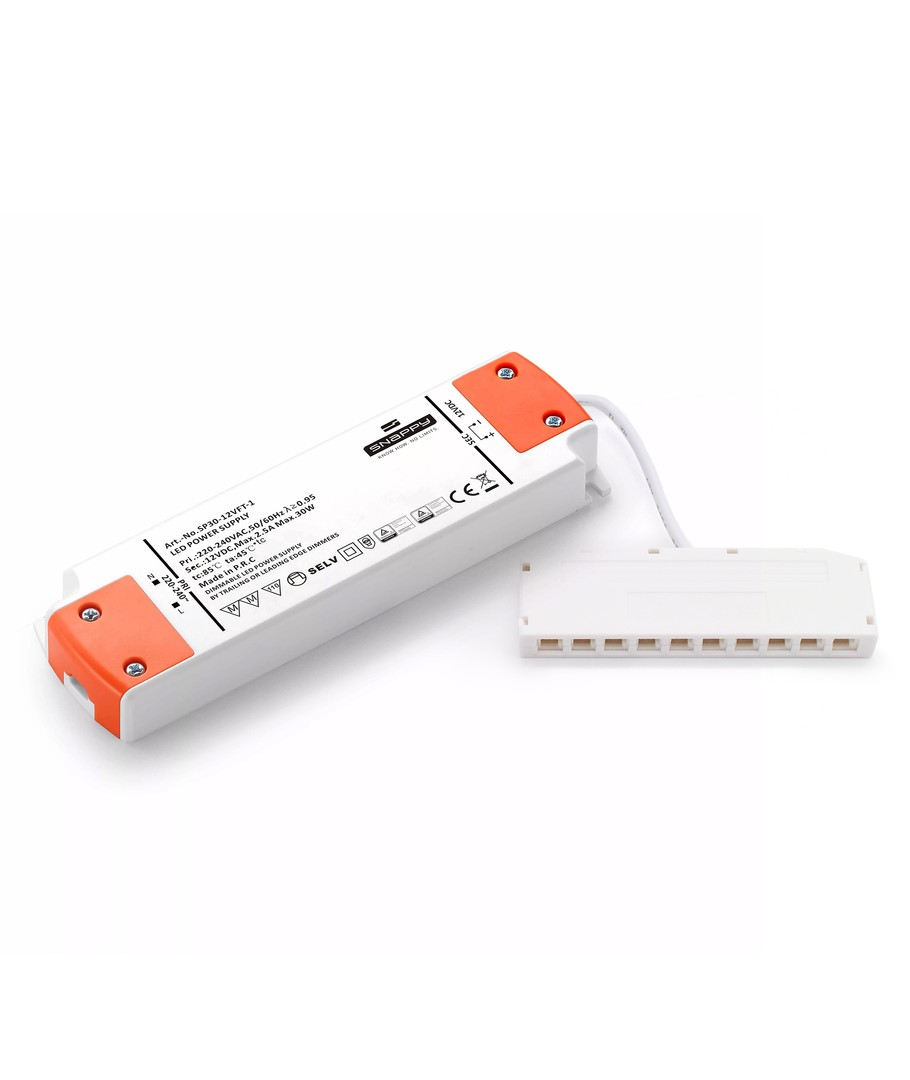 Strømforsyningen har dimensionerne: 158x45.8x18.3mm og fylder derfor næsten ingenting. Strømforsyningen kan let skjules ovenpå overskabe mm.