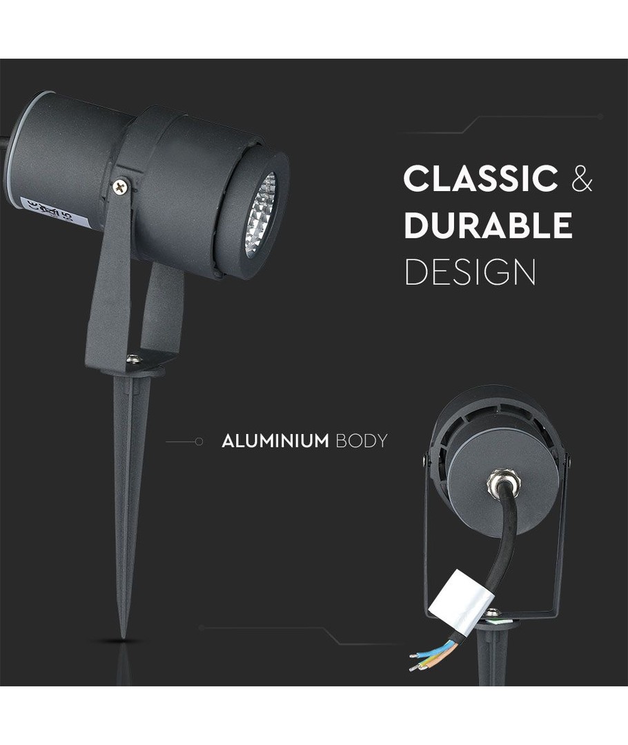 Takket være den avancerede COB LED-teknologi får du et kraftfuldt og præcist lys, der fungerer som en effektiv lyskegle. Det medfølgende spyd gør installationen utrolig nem; du skal blot trykke det ned i jorden, der hvor du ønsker lys, og tilslutte det. Spottet er desuden monteret på en bøjle, så du let kan vippe og justere lyset i den helt rigtige vinkel.