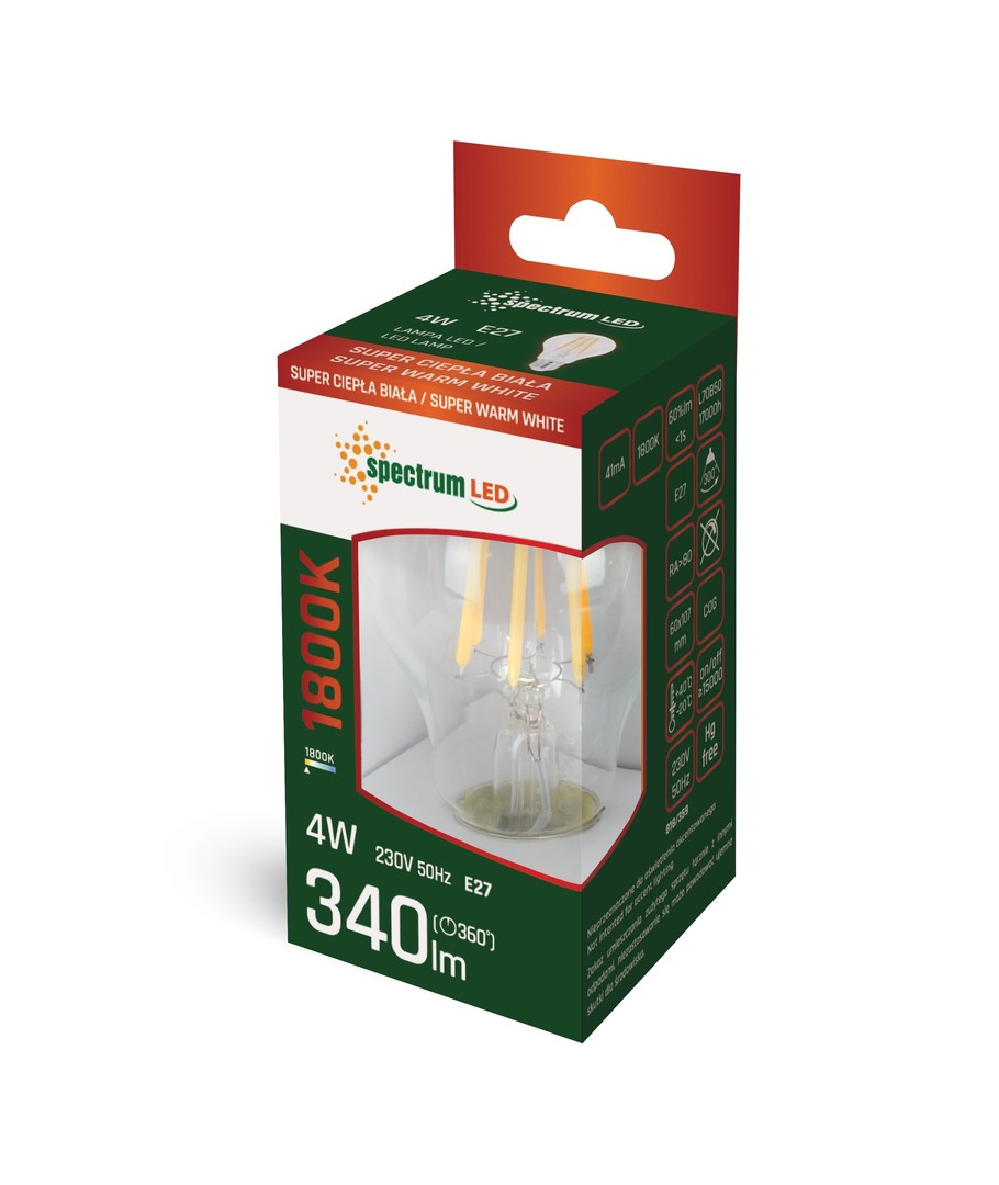 Spectrum 4W LED Pæren udsender et ekstra varmt hvidt lys på 1800K. Dette skaber en hyggefuld atmosfære med det varme skær, der kendetegner de traditionelle glødetrådspærer.