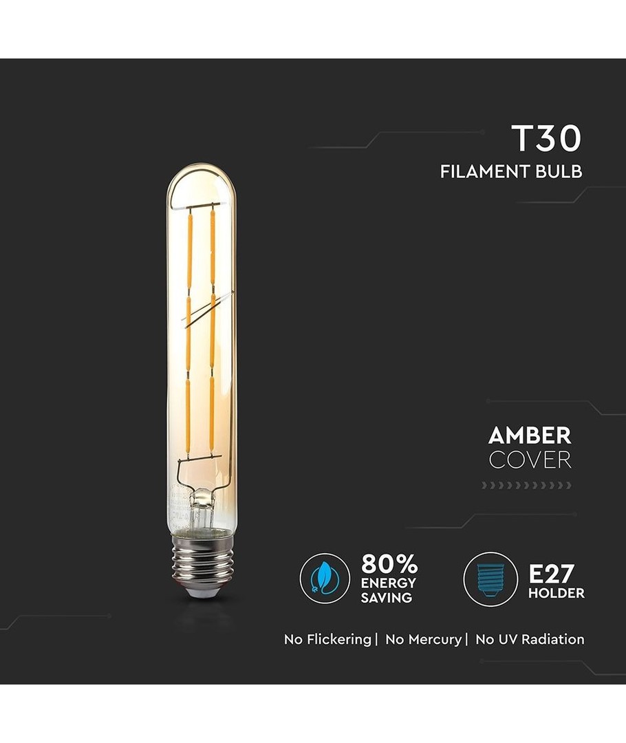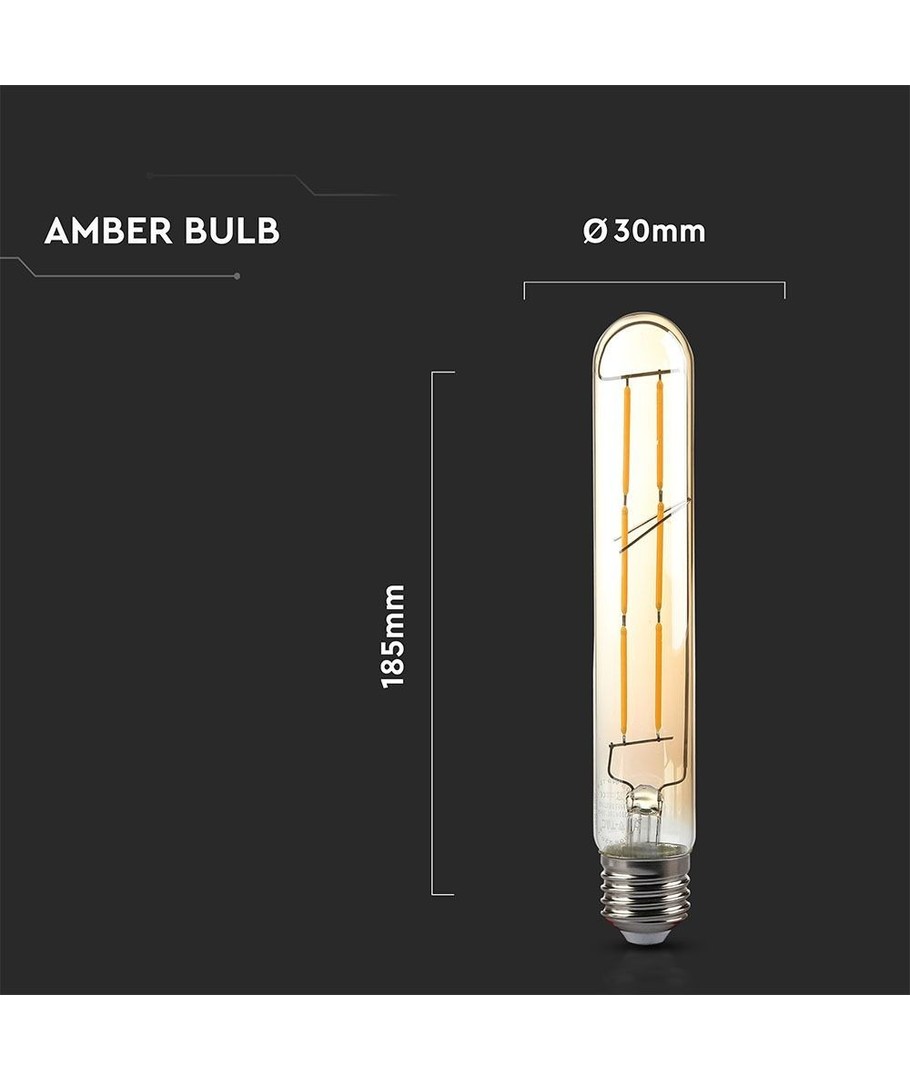 Dimensioner: Med sine mål på 30 x 185 mm passer pæren perfekt til de fleste lamper og armaturer, hvilket gør den alsidig og let at anvende i mange forskellige miljøer.