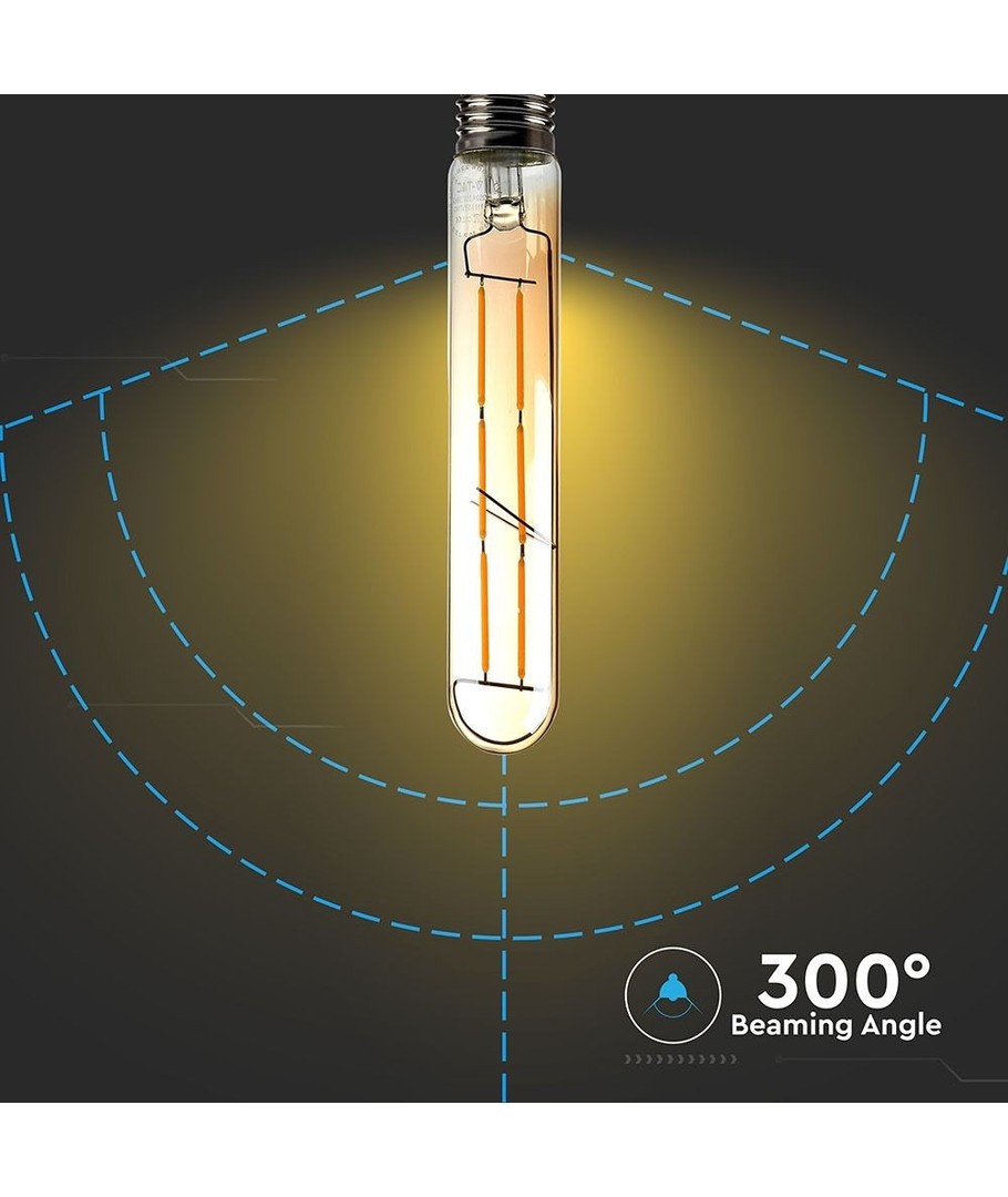 6W E27 pære fra V-Tac med kultråde, og et ekstra varmt hvidt lys på 2200K.
