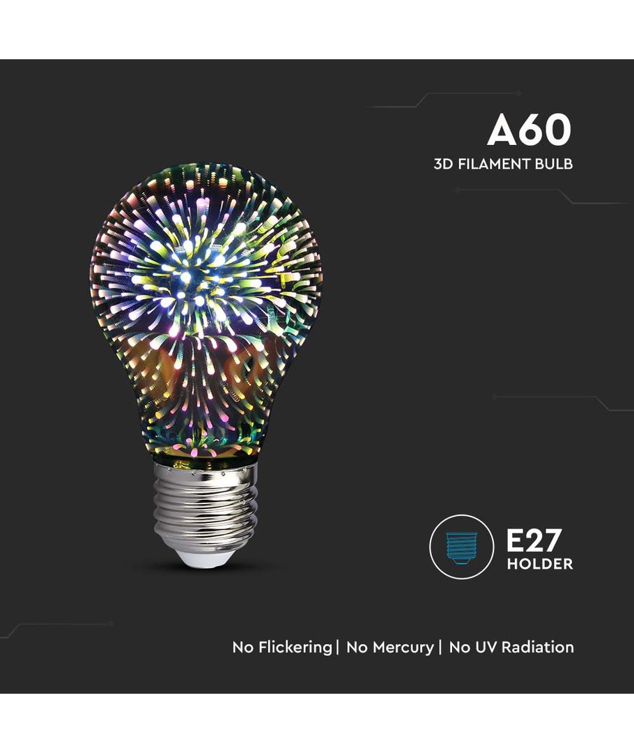 3D LED Pære 3W E27 er det ideelle valg for dem, der ønsker at tilføje et kreativt og miljøvenligt element til deres belysningsløsninger.