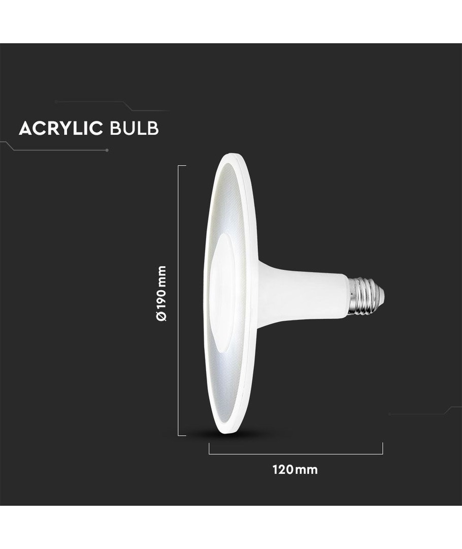 Med dimensionerne 120 x Ø190 mm passer pæren godt til mange forskellige armaturer. Bemærk venligst, at den har IP20 klassificering, hvilket betyder, at den ikke er modstandsdygtig over for vand.
