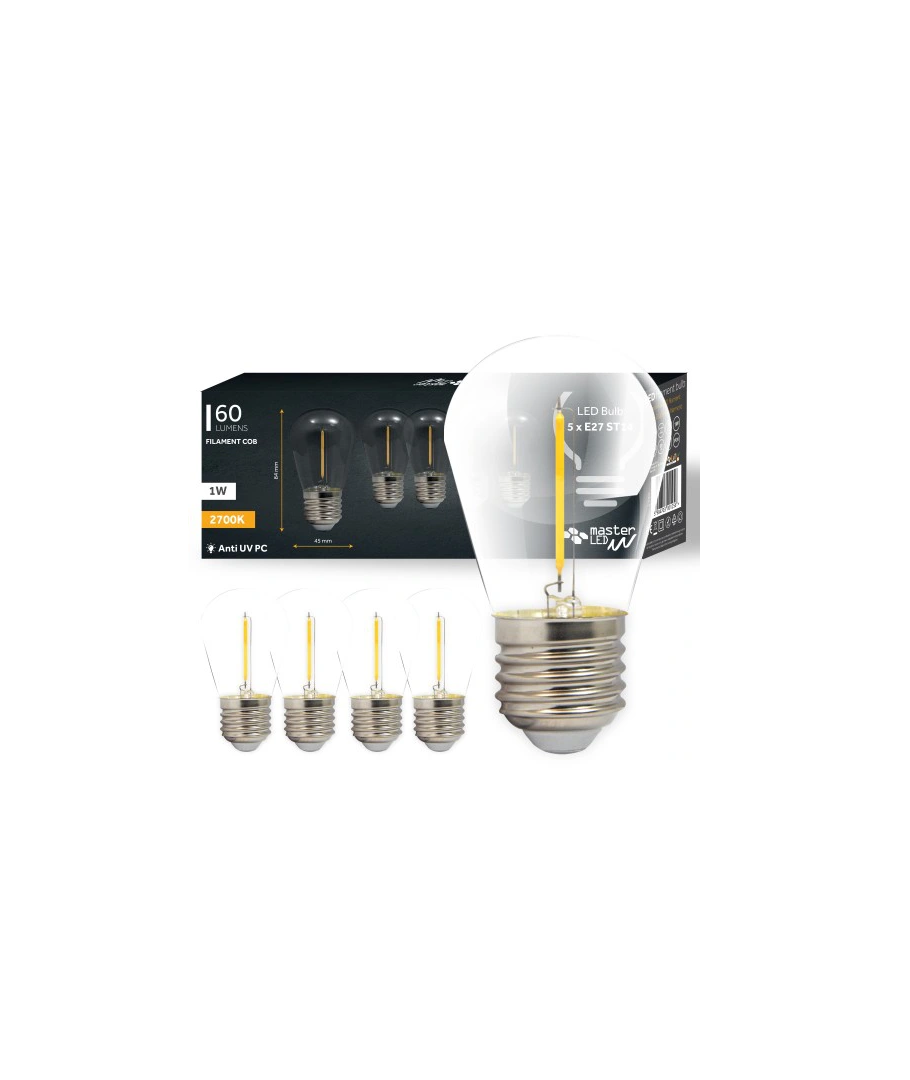 Opgradér dit hjem belysning med disse effektive og stilfulde 1W LED pærer, der leveres i en pakke med 5 stk. Disse pærer benytter moderne COB filament teknologi, hvilket sikrer en effektiv lysoplevelse med et klassisk udseende. Pærerne er desuden udstyret med en standard E27 stor fatning, hvilket gør dem nemme at installere i de fleste lamper.