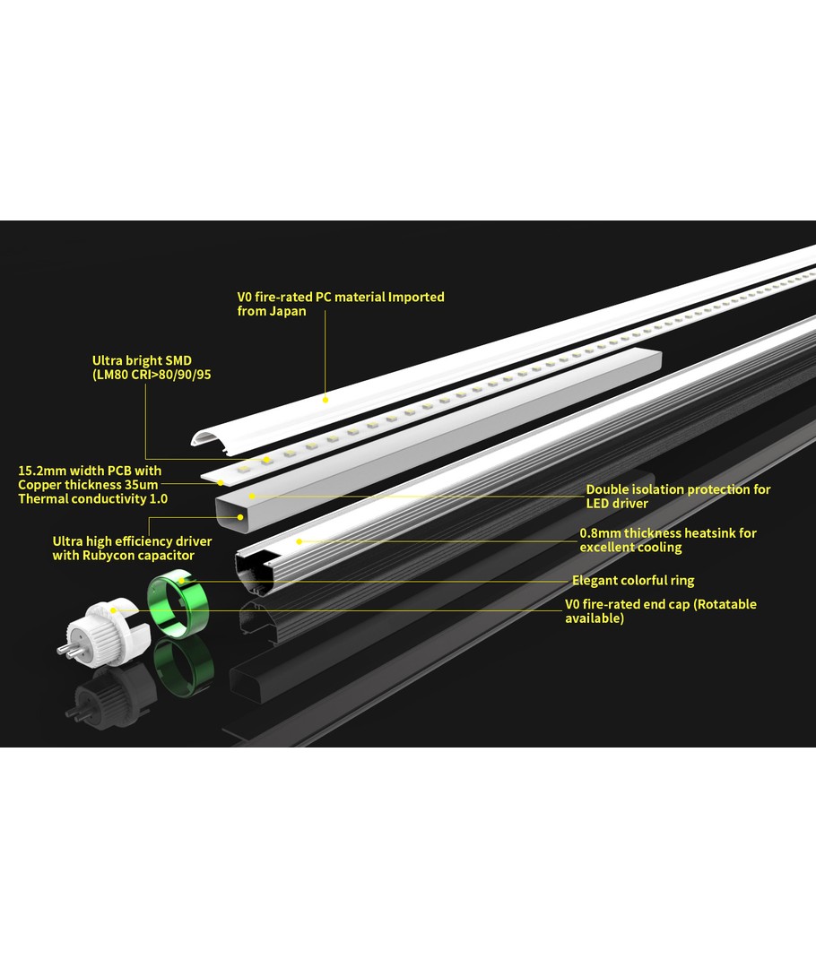 Røret har en høj lysudbredelse på 140 grader, hvilket sikrer en jævn fordeling af lyset. Med en lyskvalitet på RA 80-85 bringer den lyse farver til live, hvilket skaber en naturlig og behagelig atmosfære, der opfylder de fleste belysningsbehov.