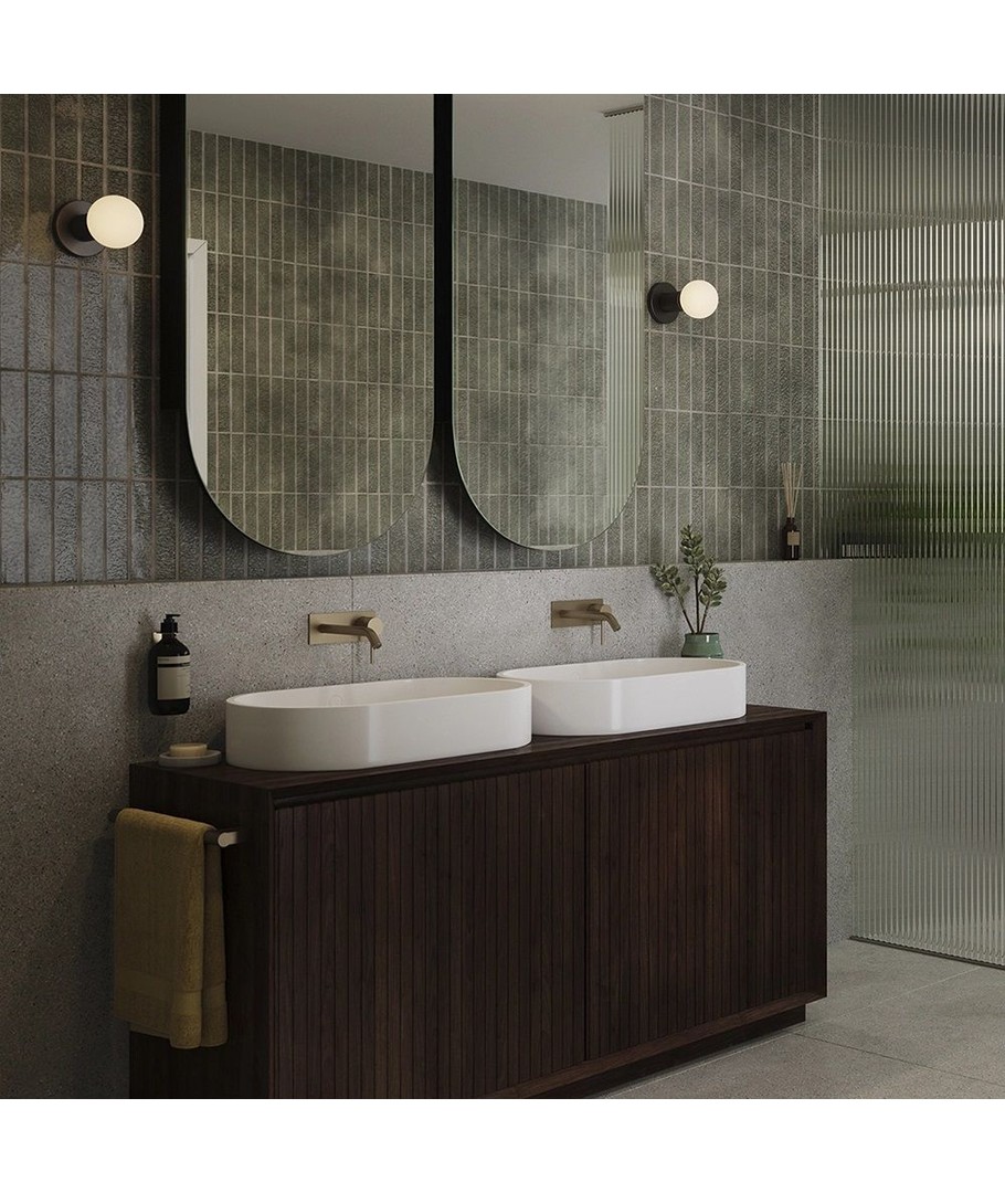 Med en børstet grafitfinish er den beskedne størrelse og diskrete form beregnet til at løfte pærens profil, mens den fugtbestandige anodiseret aluminiumskonstruktion garanterer visuel konsistens over mange års brug.