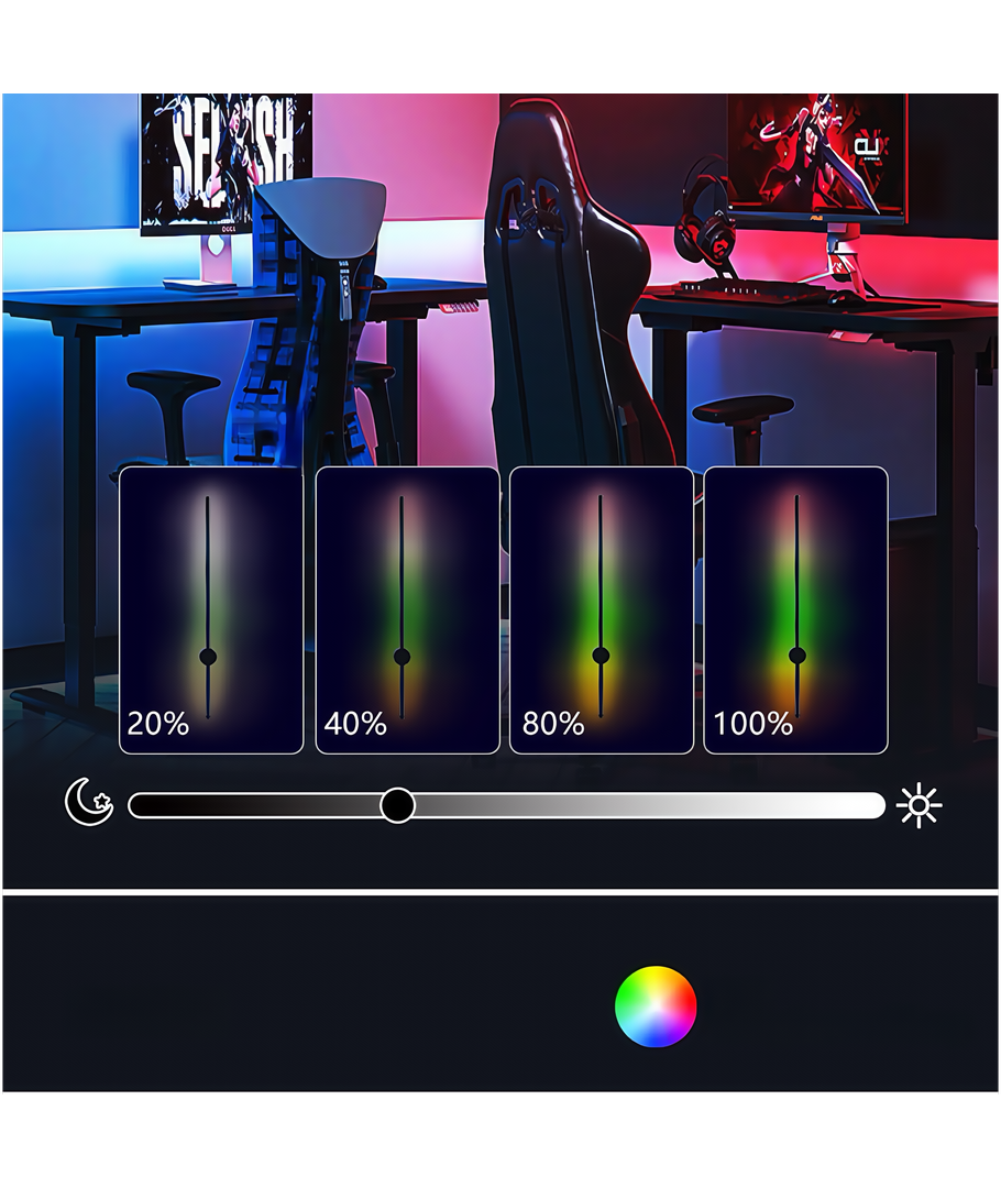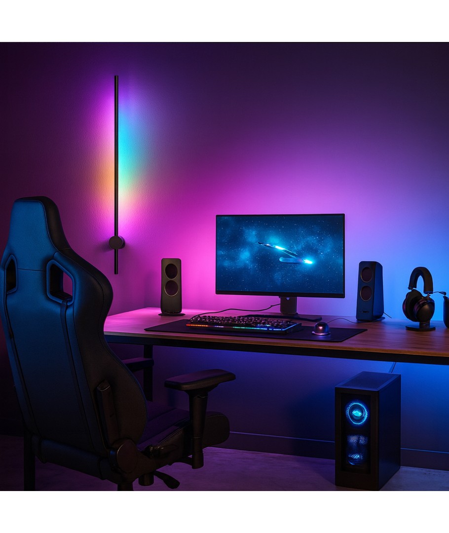 Denne 80 cm RGBIC væglampe er skabt til at løfte dit gaming- eller streaming-setup til næste niveau. Med dynamiske farver, reaktive effekter og total kontrol via app og fjernbetjening får du en lampe, der matcher din stil – uanset om du gamer, ser film eller viser dit setup frem.