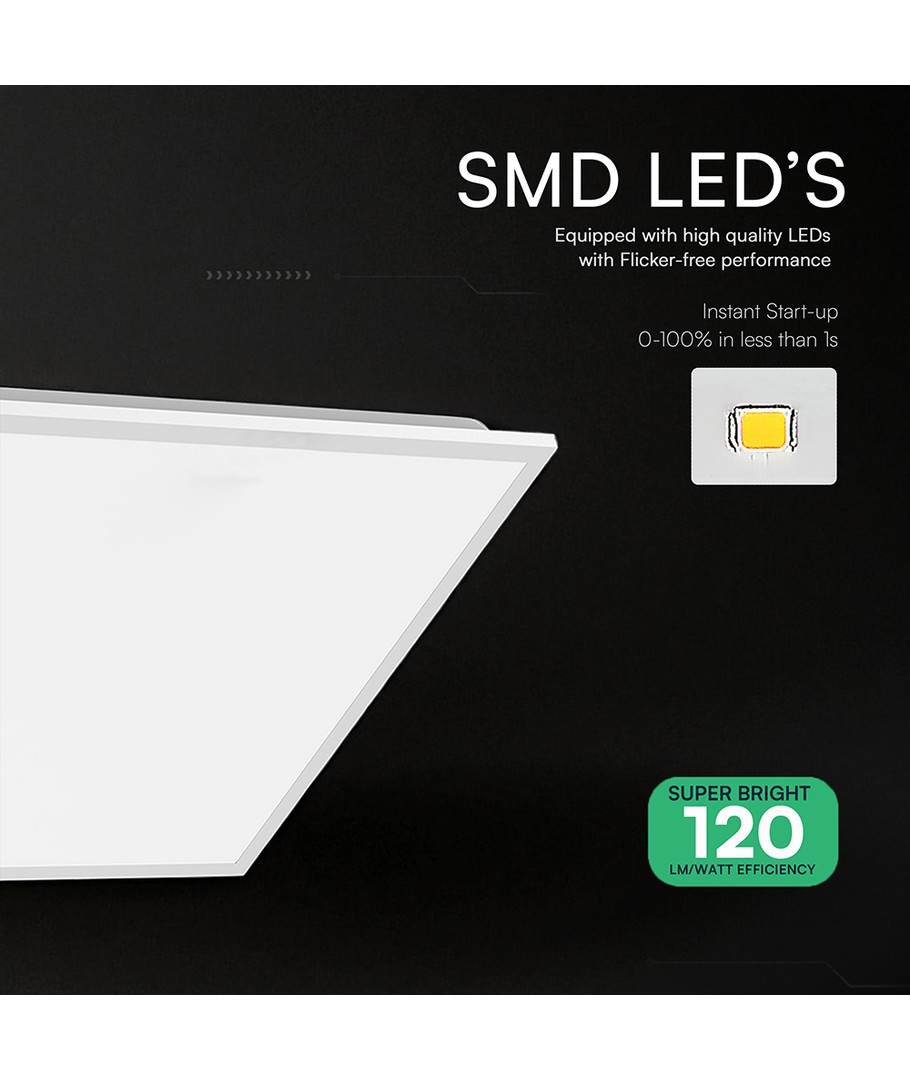 Som en del af V-Tac Pro serien, leveres dette panel med en garanti på 3 år, hvilket sikrer lang levetid og kvalitet. Dets diskrete slanke design (595 x 18 x 595 mm) gør det til en stilfuld tilføjelse til ethvert rum. Vær opmærksom på, at det er IP20 klassificeret og dermed ikke modstandsdygtigt over for vand.