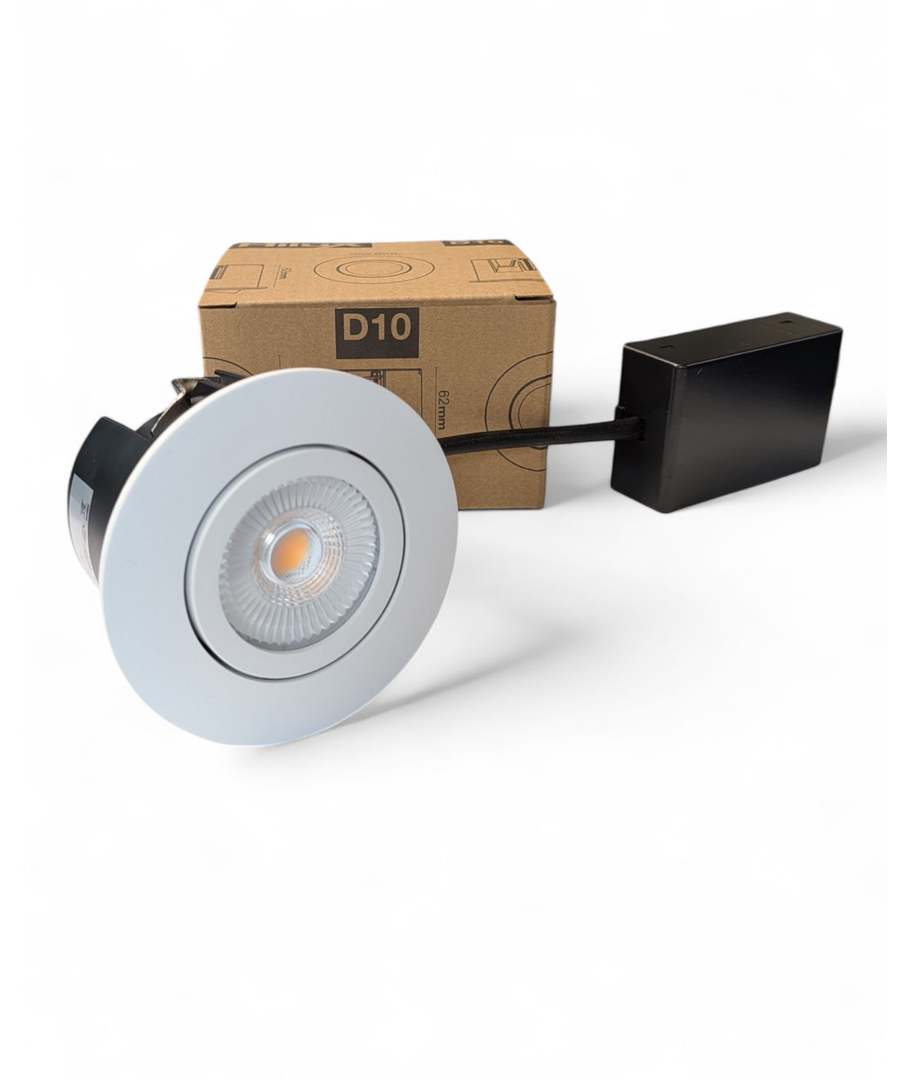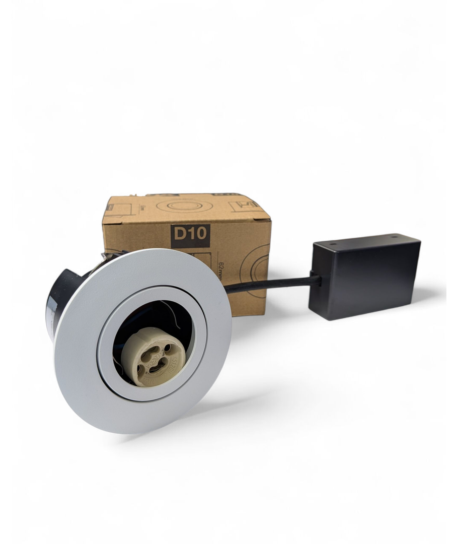 Spottet giver nem og hurtig installation ved hjælp af skrueben montering. D10 spottet har en indbygnings højde på kun 65mm og passer i et udskærings hul på Ø76mm. Spottet er godkendt til MAX 7 watt LED GU10 pære.