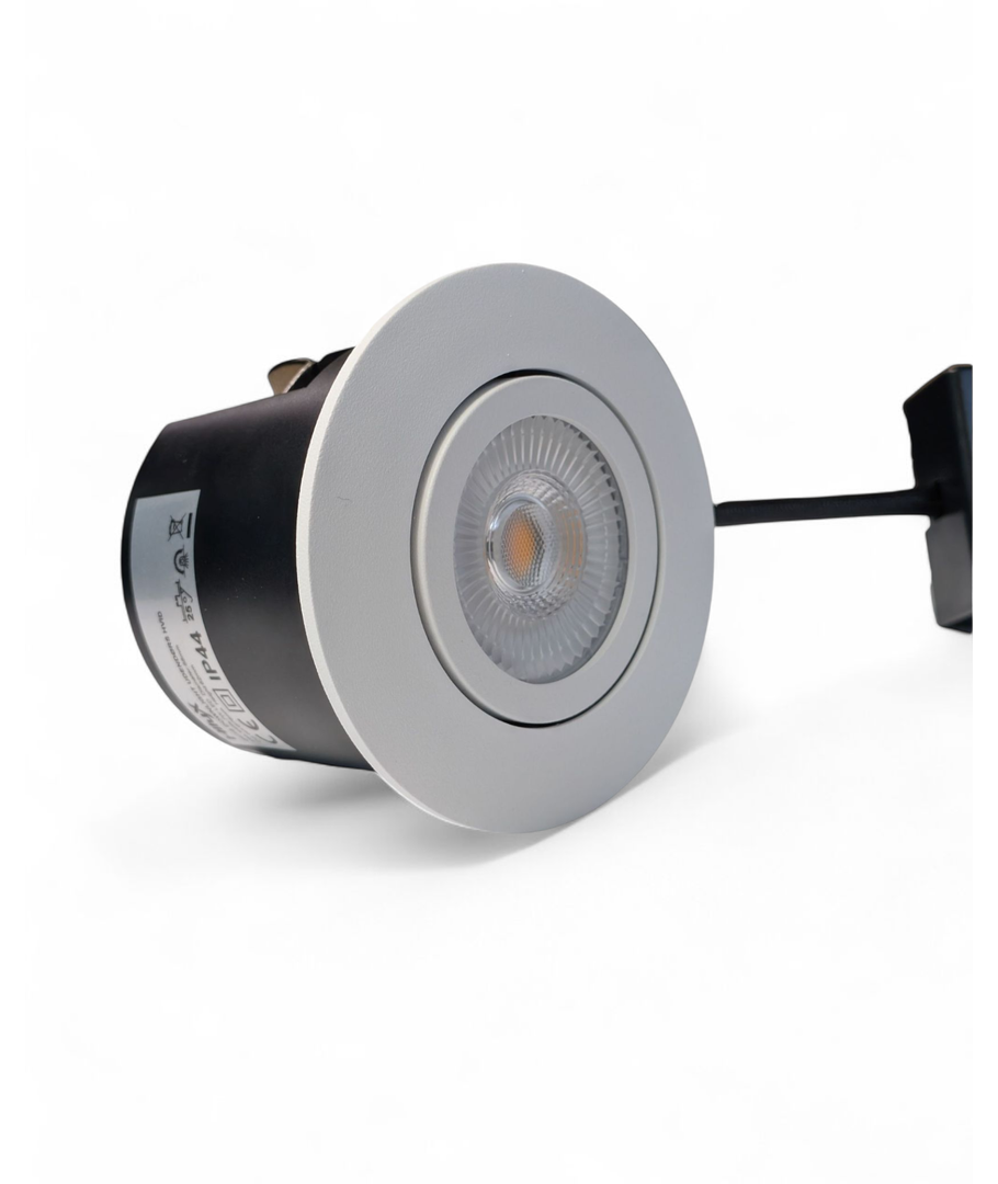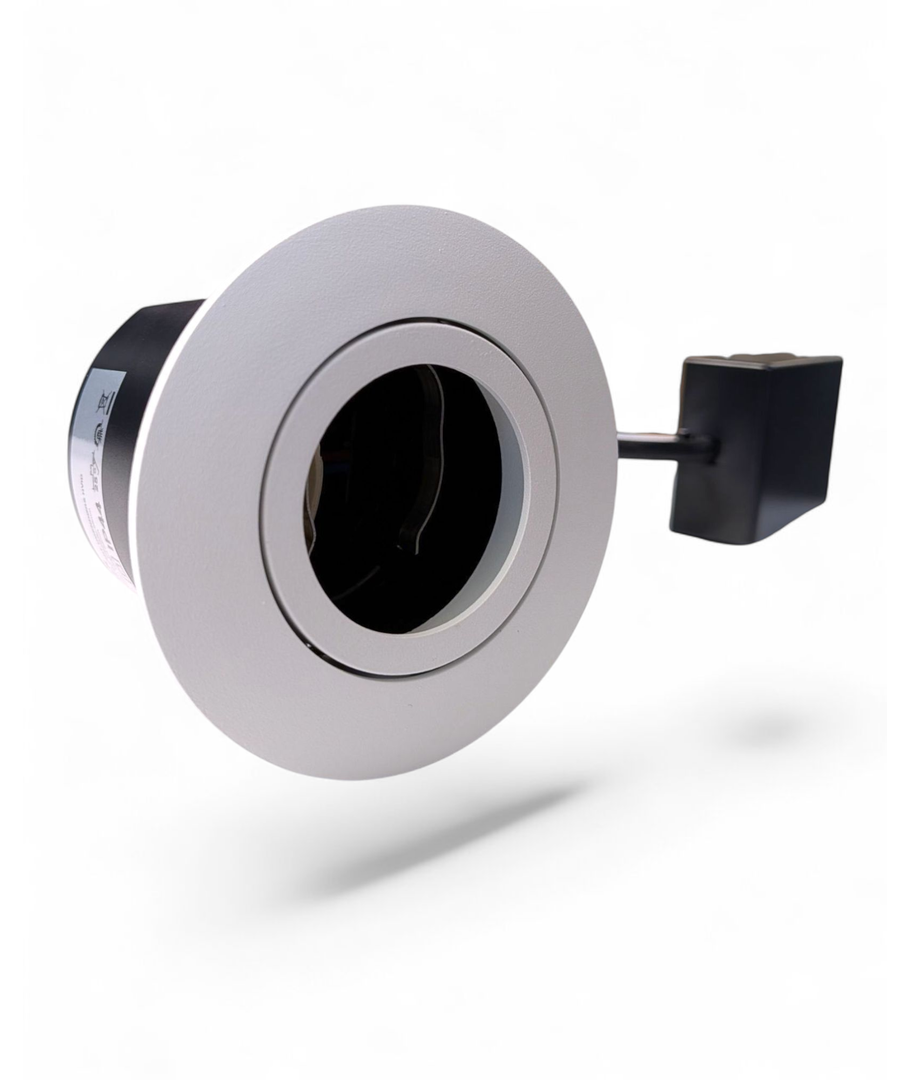 Hilux D10 udendørs indbygningsspot i mat hvid som er malet i søvandsbestandig maling hvilket giver mulighed for at anvende dette spot udendørs i udhæng eller i carport/garage samt vådrum. Spottet er udarbejdet i samarbejde med Danske Hilux.