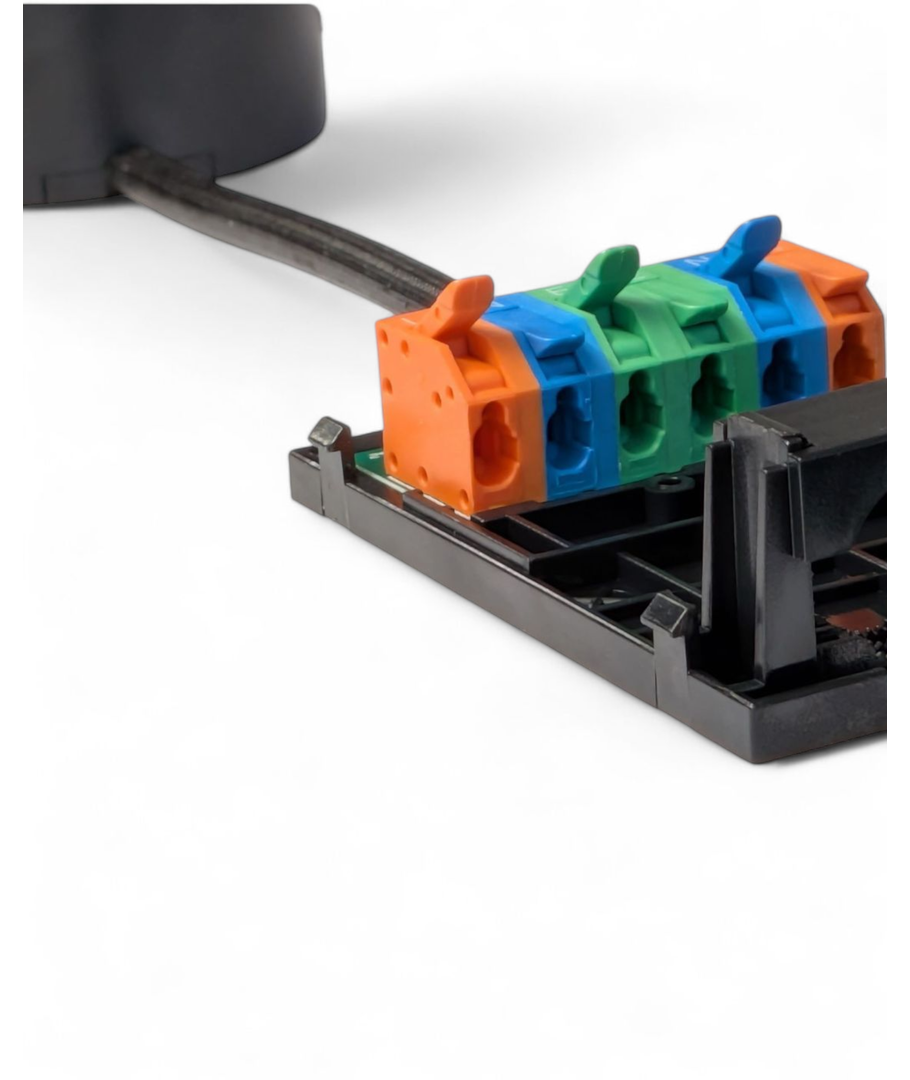 Videresløjfning: Fjederklemmer muliggør vidersløjfning med op til et 3Gx2,5 mm2 kabel.