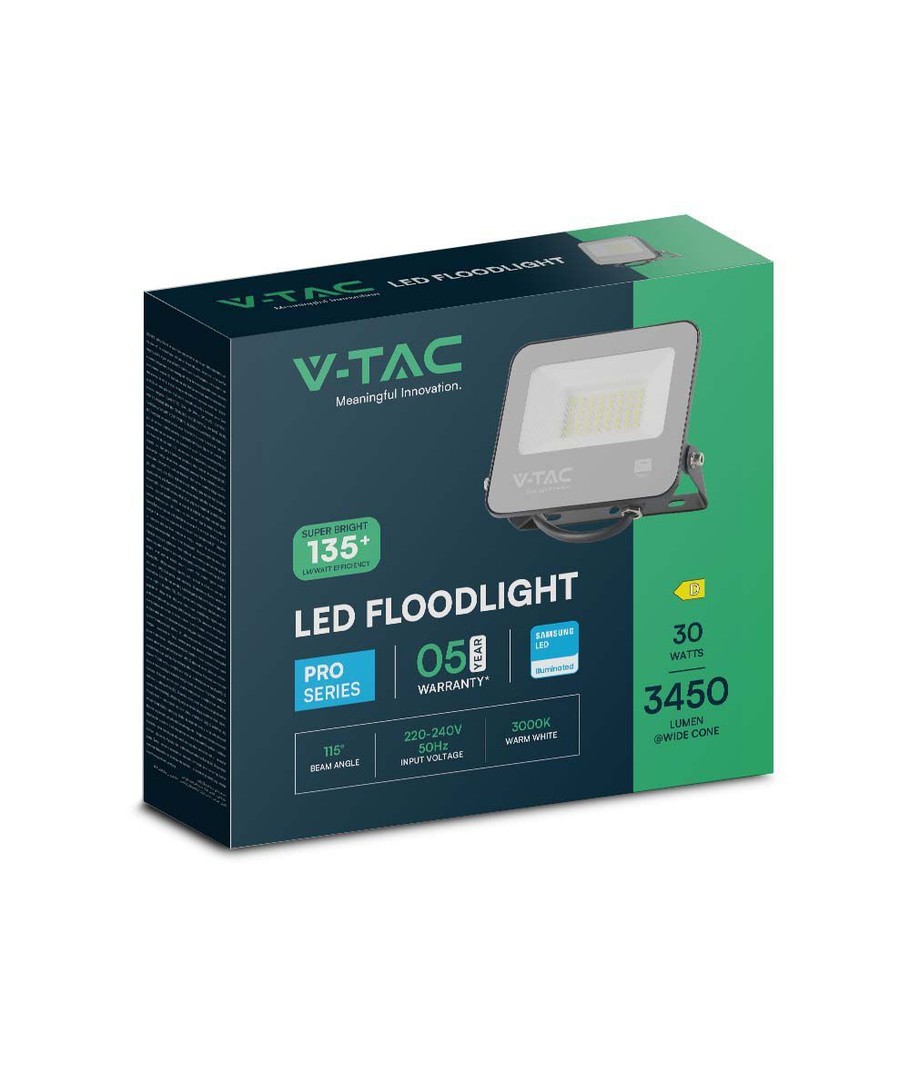 Vælg V-Tac 30W LED projektør for en pålidelig og fleksibel belysningsløsning, der opfylder dine behov med stil og effektivitet.
