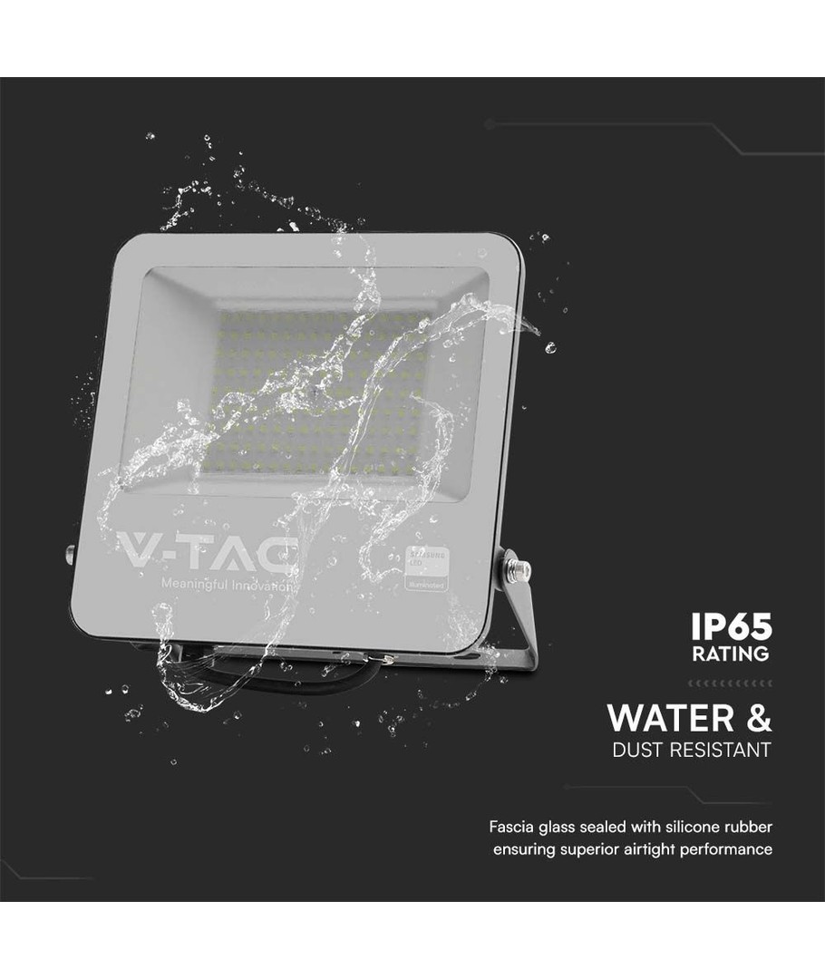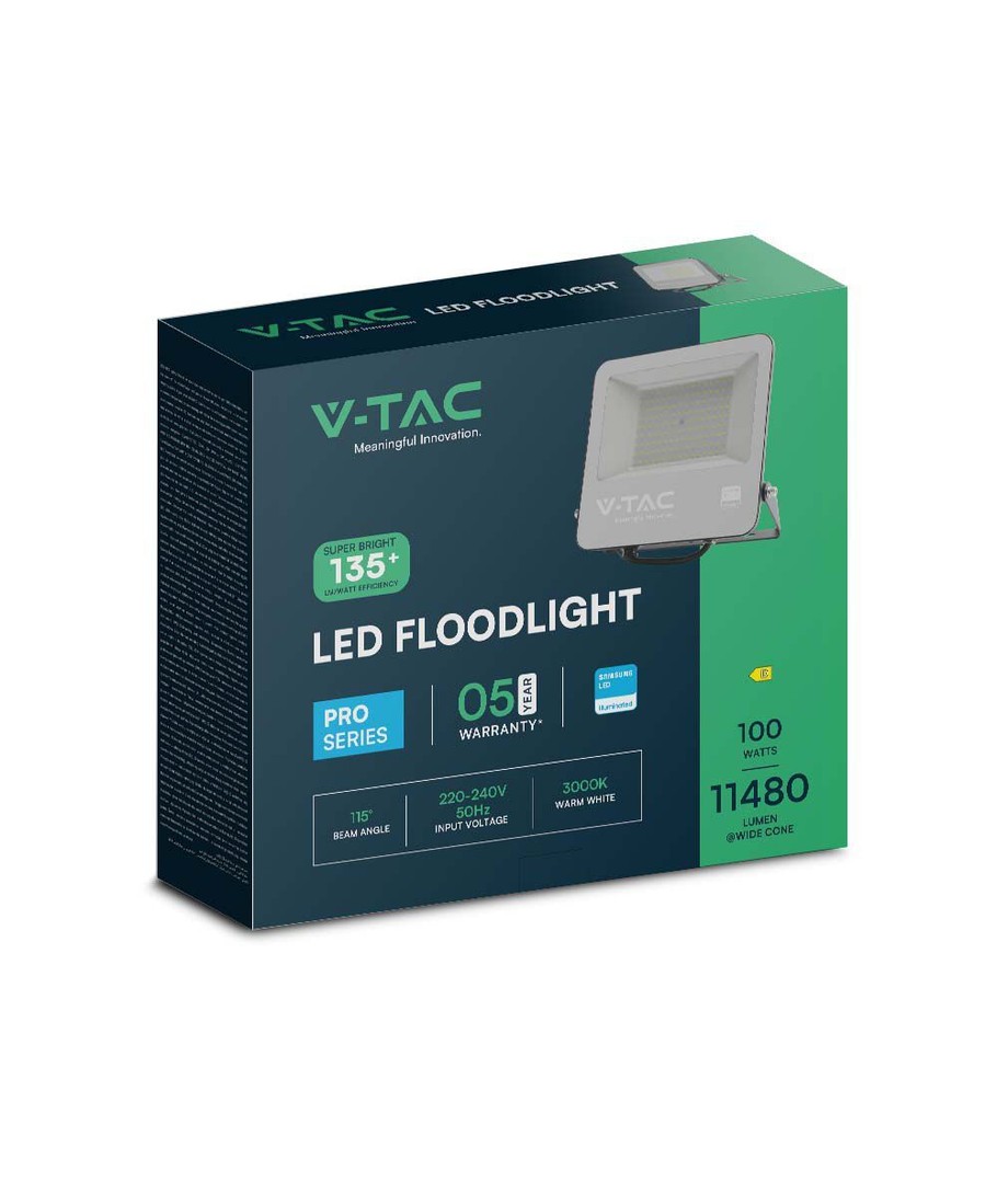 Med en 5 års producentgaranti kan du stole på, at V-Tac 100W LED projektøren vil levere pålidelig belysning, uanset hvor du vælger at bruge den. Denne robusthed og sikkerhed er yderligere understøttet af de højkvalitets komponenter, såsom Samsung LED chippen, der er indbygget i projektøren.
