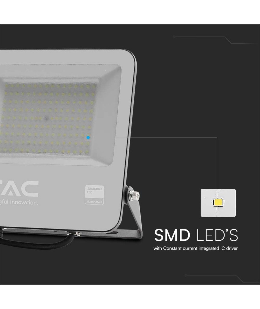Oplev kraftig belysning med V-Tac 200W LED projektør, som er udstyret med en avanceret Samsung LED chip. Denne arbejdslampe er ideel til krævende udendørsforhold samt større belysningsprojekter, hvor en jævn lysfordeling er ønsket.