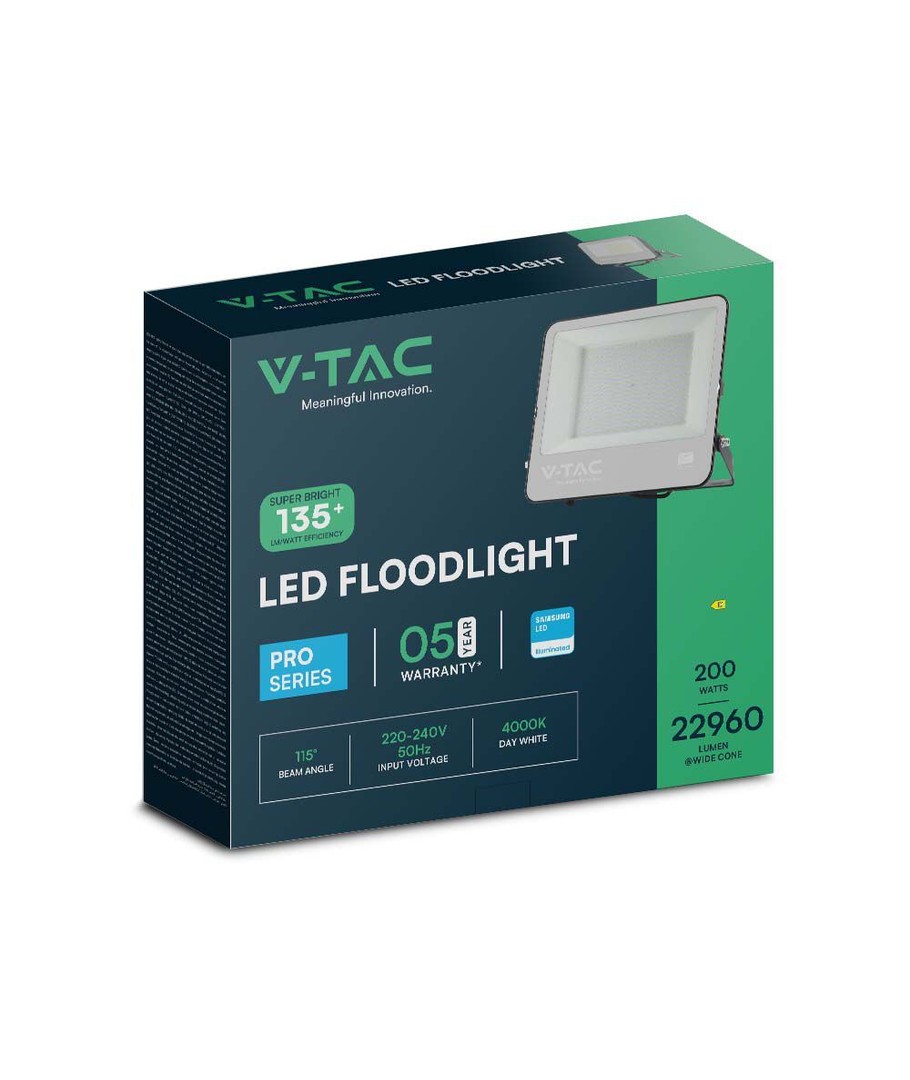 V-Tac 200W LED projektør er den perfekte belysningsløsning til dem, der ikke går på kompromis med ydeevne eller kvalitet. Med avancerede funktioner og en robust konstruktion er denne projektør klar til at opfylde alle dine belysningsbehov, uanset vejrforhold eller lysforhold.