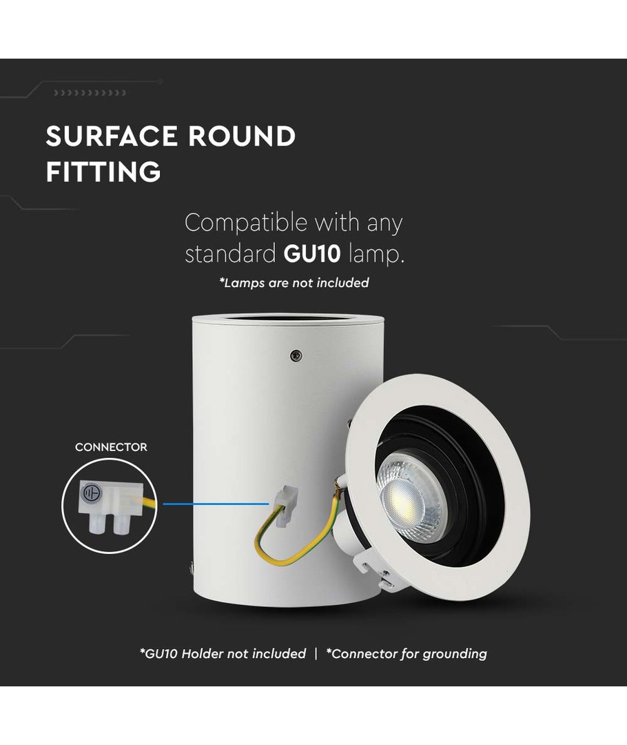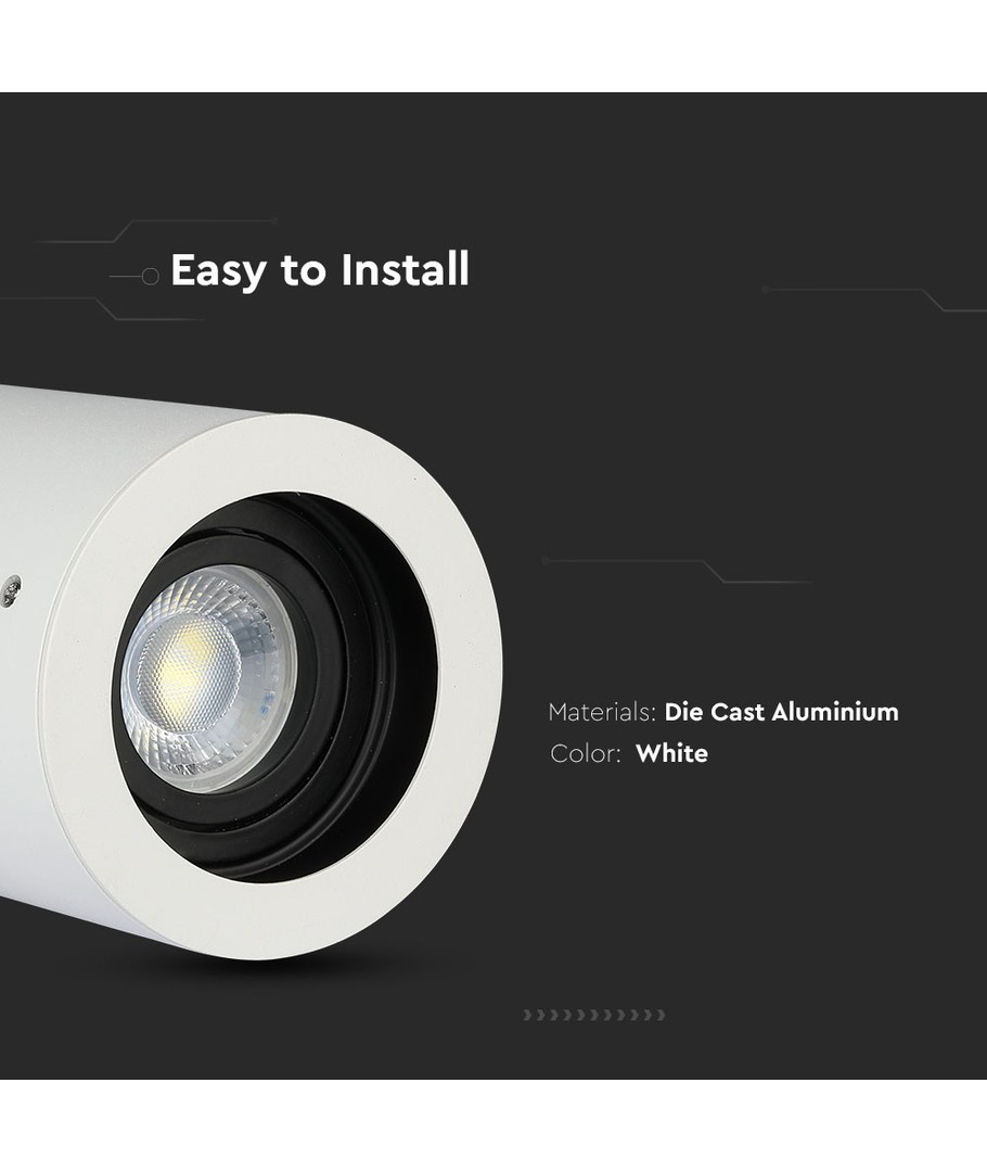 GU10 påbygningsspot - Rund, hvid, 15° justerbar, Ø10 x 14,2 cm, uden lyskilde V-TAC Udvid