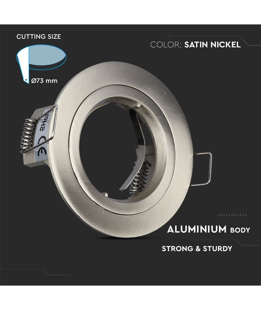GU10 indbygningsspot - Satin nikkel, rund, aluminium, hul: Ø7,3 cm, mål: Ø8,1 cm V-TAC Udvid