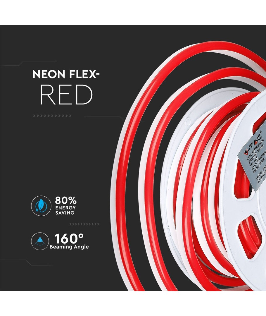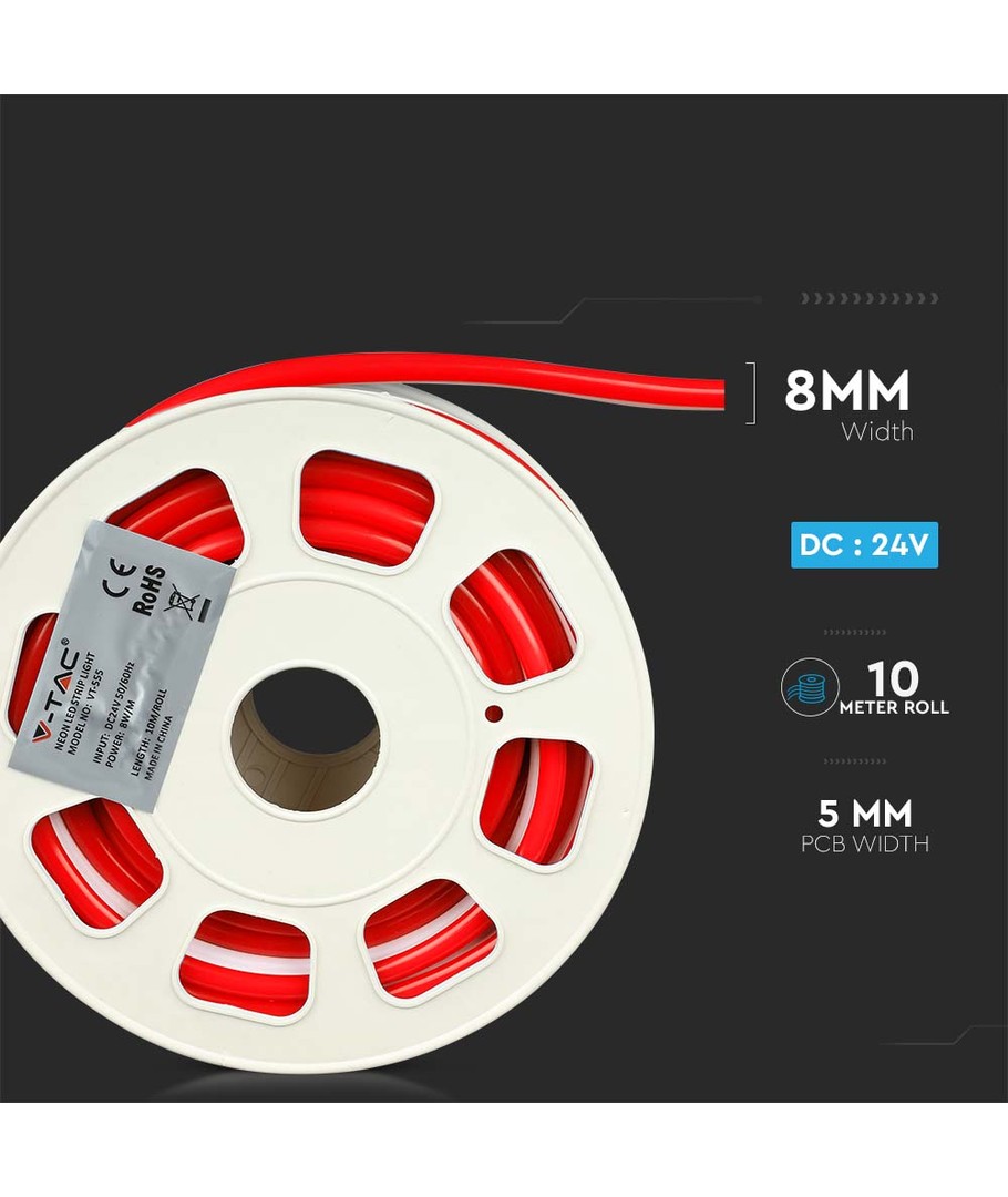 Oplev den alsidige og holdbare 8W/m Neon Flex 24V i en iøjnefaldende rød farve, der leveres i en praktisk 10 meter rulle. Med en effekt på 8W og en lysstyrke på 320 lumens, er denne neon flex et fantastisk valg til både indendørs og udendørs projekter.