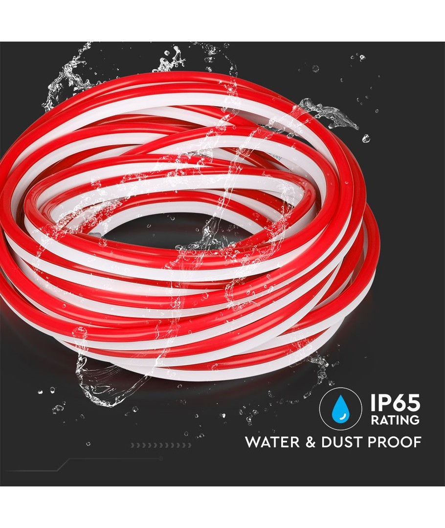 Med en IP65 klassifikation, er neon flex designet til at tåle både vandstænk og regn. Perfekt til facader, skilte eller havebrug, hvor belysningen tilføjer en unik atmosfære, samtidig med at den er robust nok til at modstå de fleste vejrforhold.