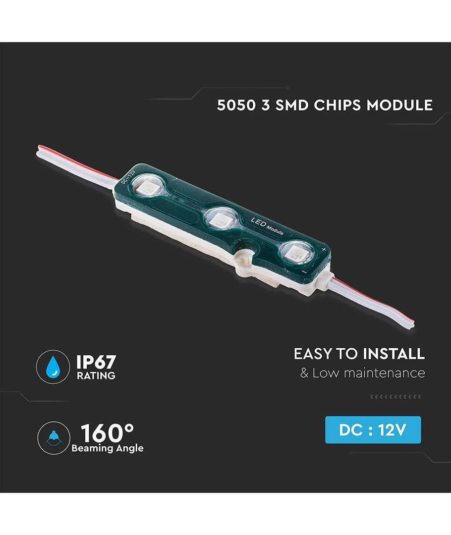 5050 Modul er en fremragende løsning for dem, der arbejder på både kommercielle og private belysningsprojekter. Med den flotte blå farve og fleksible anvendelighed kan du skabe dynamiske lyseffekter i skiltning, udstillinger eller andre installationsprojekter.