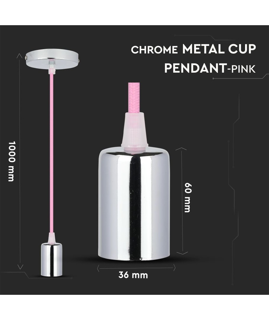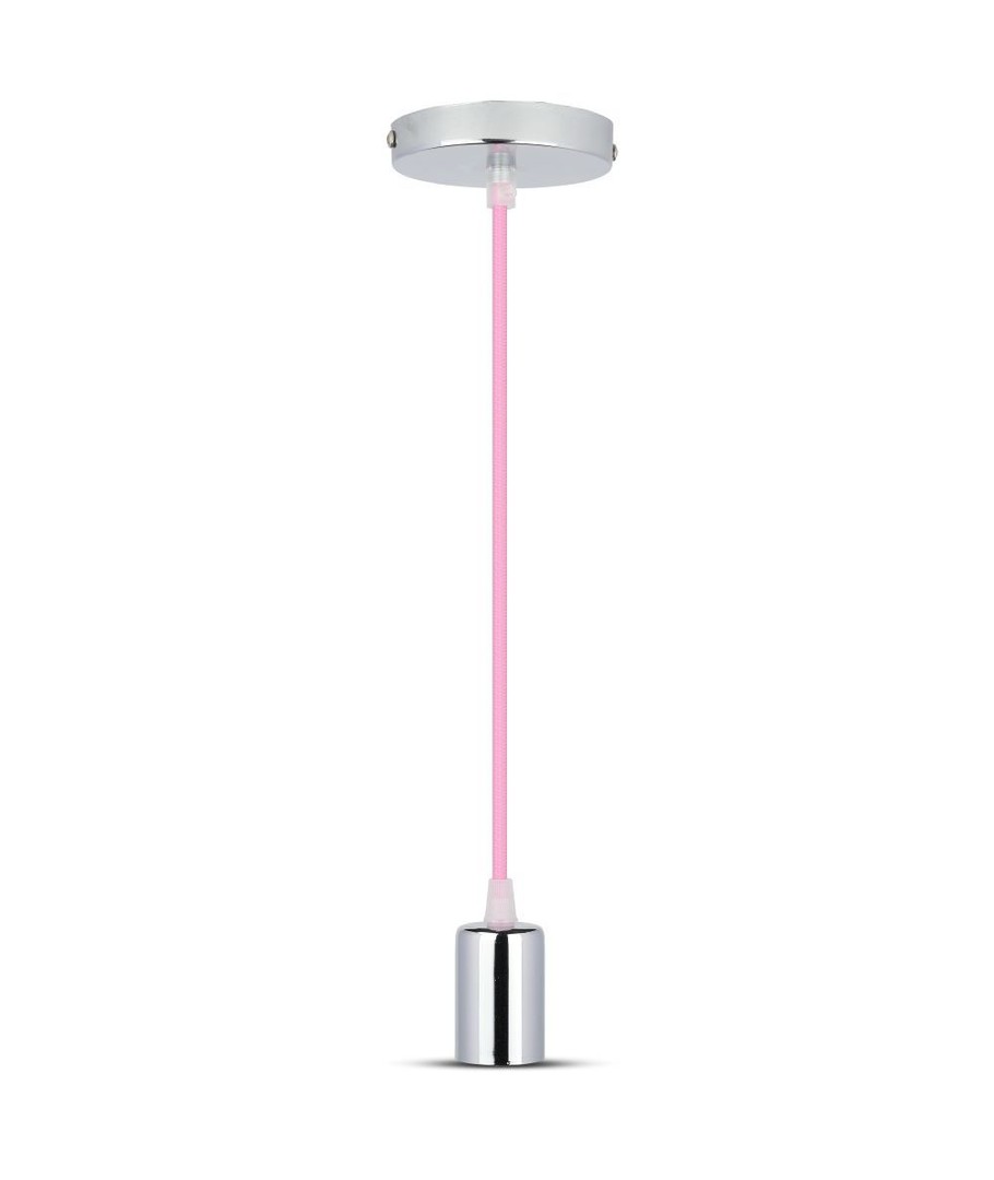 Chrome pendelophæng med lyserød ledning - E27 fatning, metal kop, uden lyskilde V-TAC Udvid