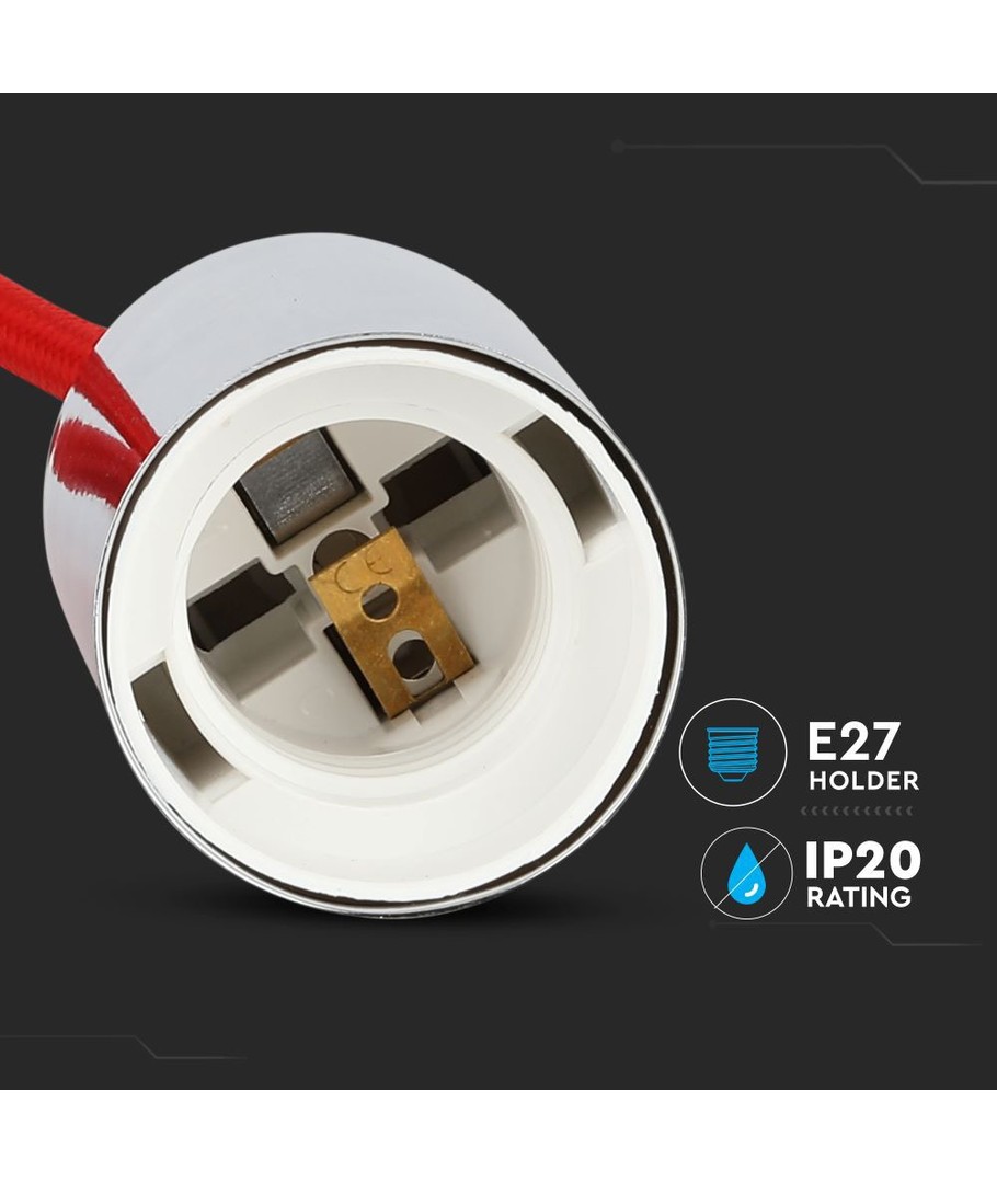 E27 pendelophæng i krom med rød ledning - Cylinder, Ø3,6 cm, uden lyskilde V-TAC Udvid
