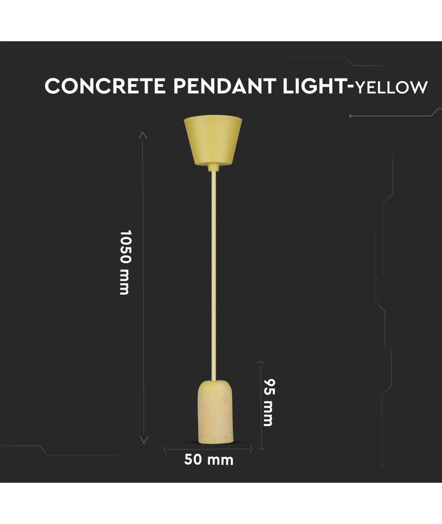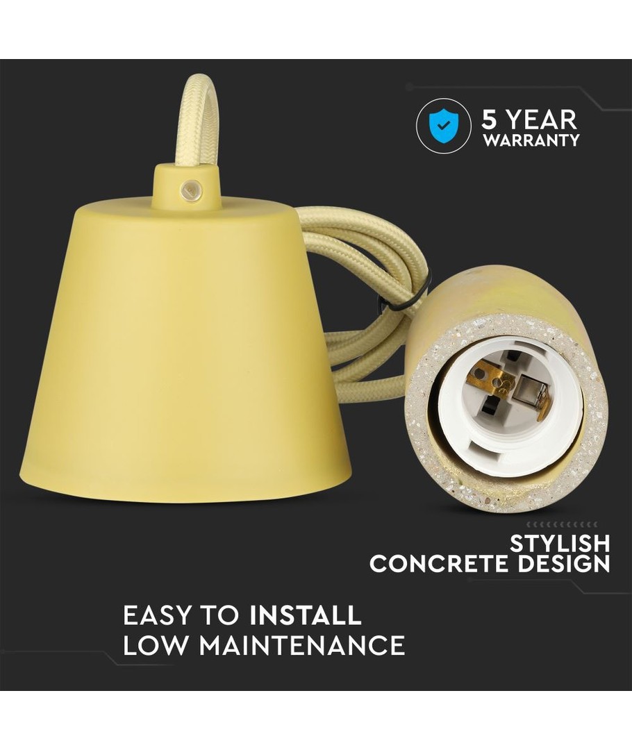 Gul beton pendel lampe, E27 fatning - Max 60W, Ø5cm, uden lyskilde V-TAC Udvid