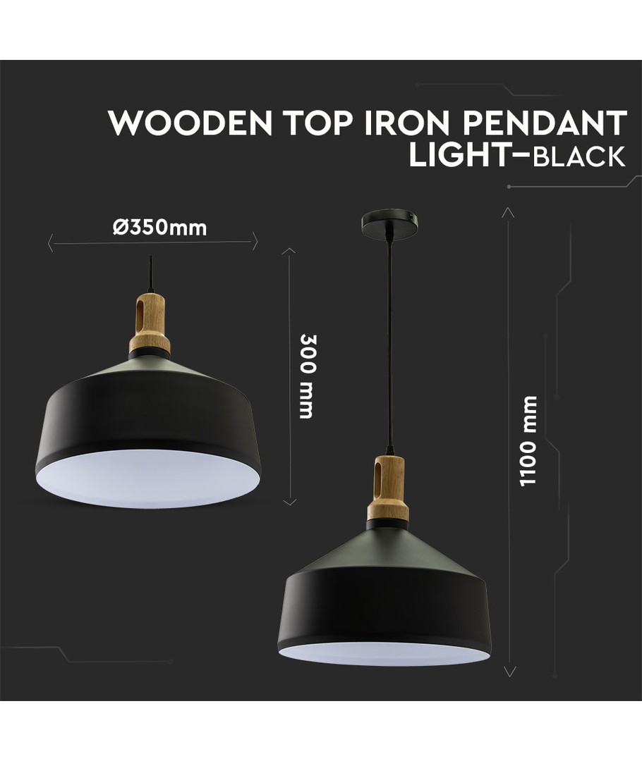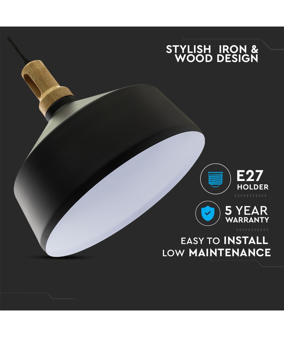 E27 pendel i sort jern med trætop - Ø30 cm, Vintage serie, uden lyskilde V-TAC Udvid