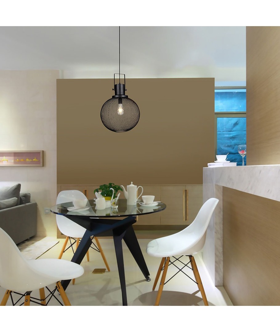 Tilføj et moderne præg til din indretning med denne elegante sort metal pendel. Skabt til at imponere, tilbyder denne lampe et unikt gitterdesign, der skaber en fascinerende lysoplevelse i ethvert rum.